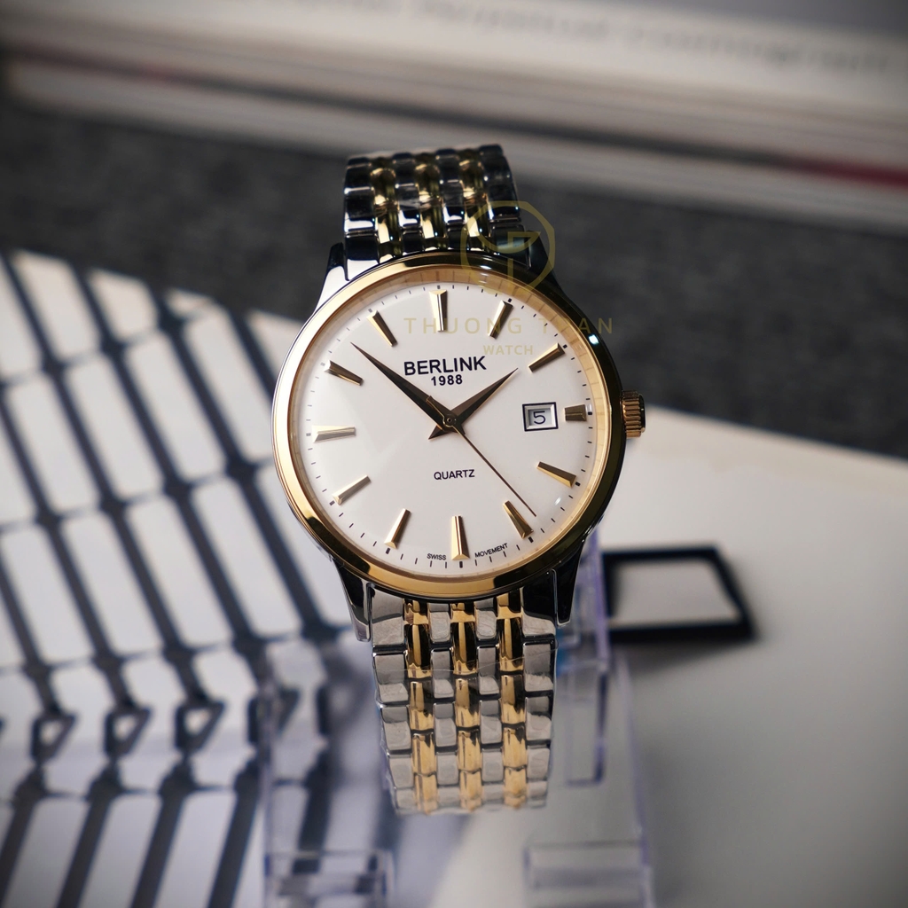 BERLINK BL1016-G03 với thiết kế mặt số tối giản, cọc số và kim chỉ màu vàng trên nền số mặt trắng vô cùng nổi bật giúp người đeo dễ dàng xác định thời gian. Vỏ đồng hồ và dây đeo được làm từ thép không gỉ sáng bóng và bền bỉ. Đây là sự lựa chọn hoàn hảo cho những ai yêu thích sự thanh lịch, sang trọng.