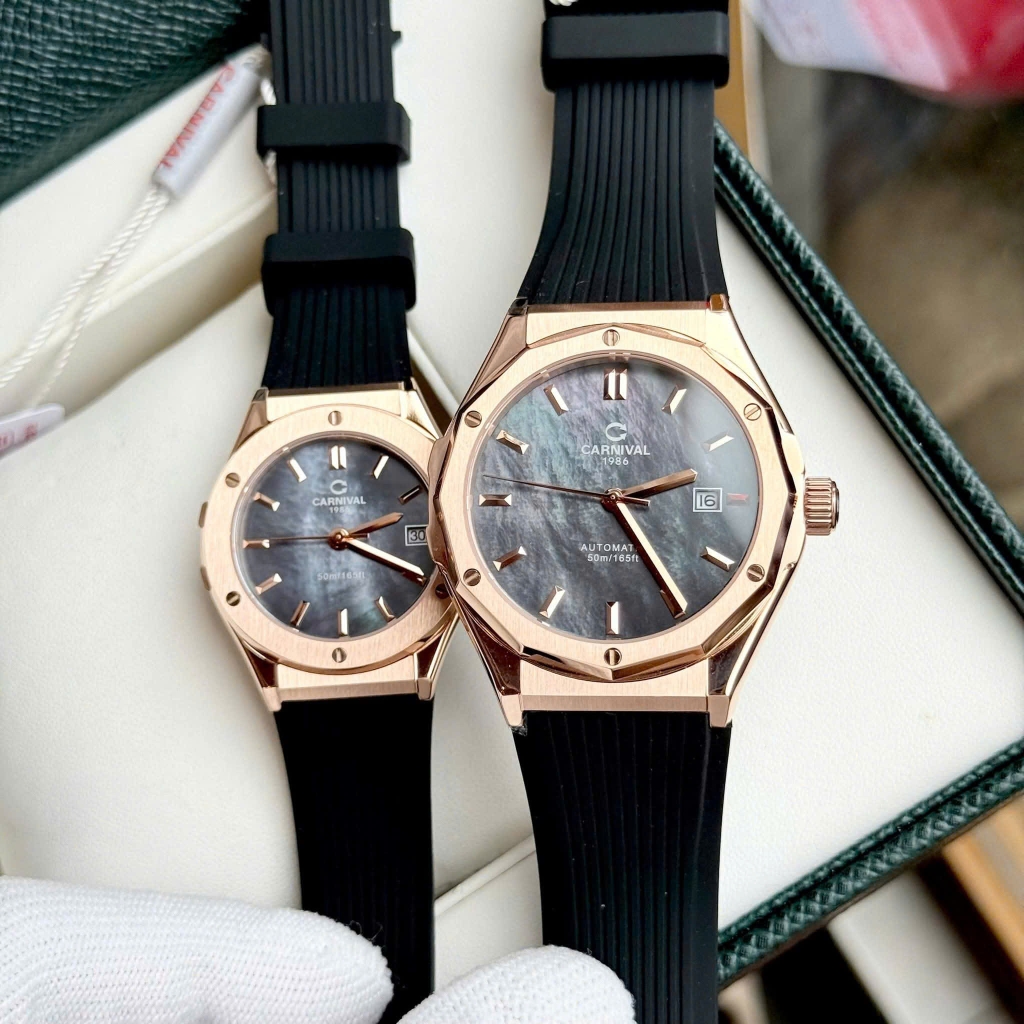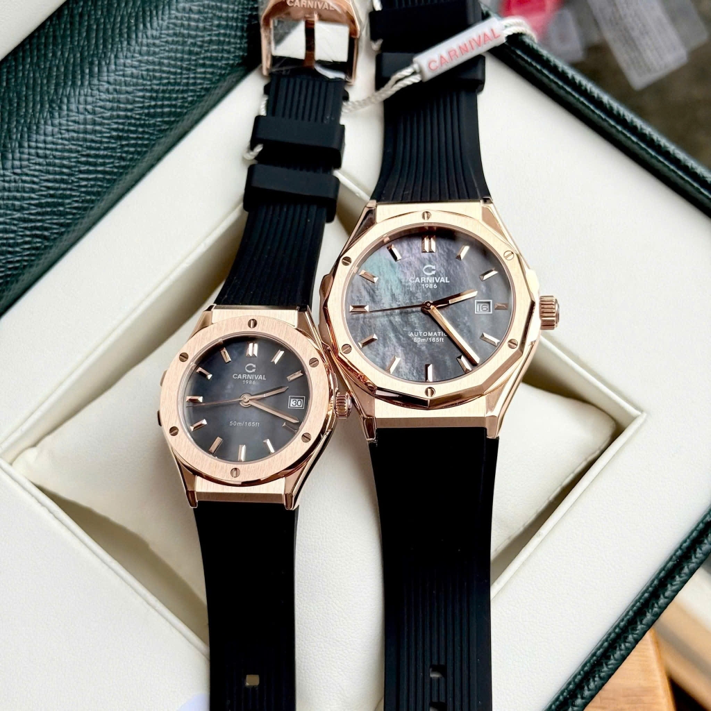 Cặp đồng hồ đôi CARNIVAL 8168 phiên bản Black MOP viền vàng hồng mang đến sự hòa quyện hoàn hảo giữa sang trọng, tinh tế và đẳng cấp.