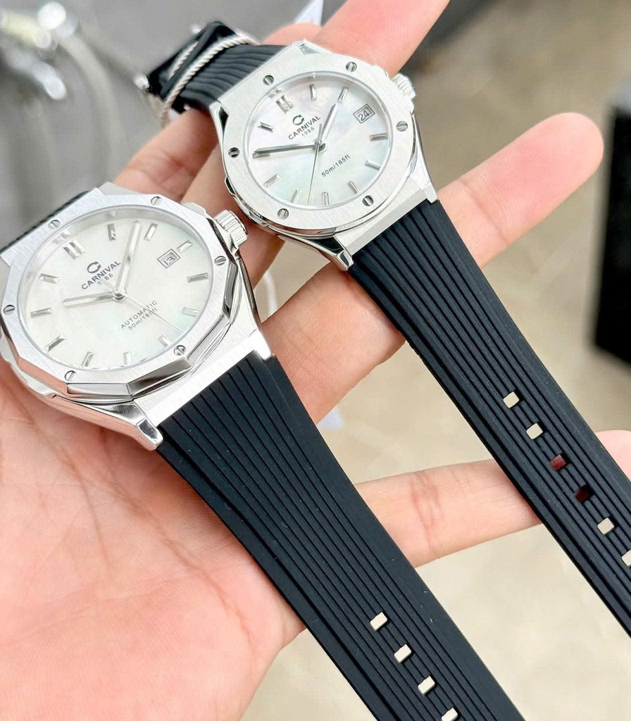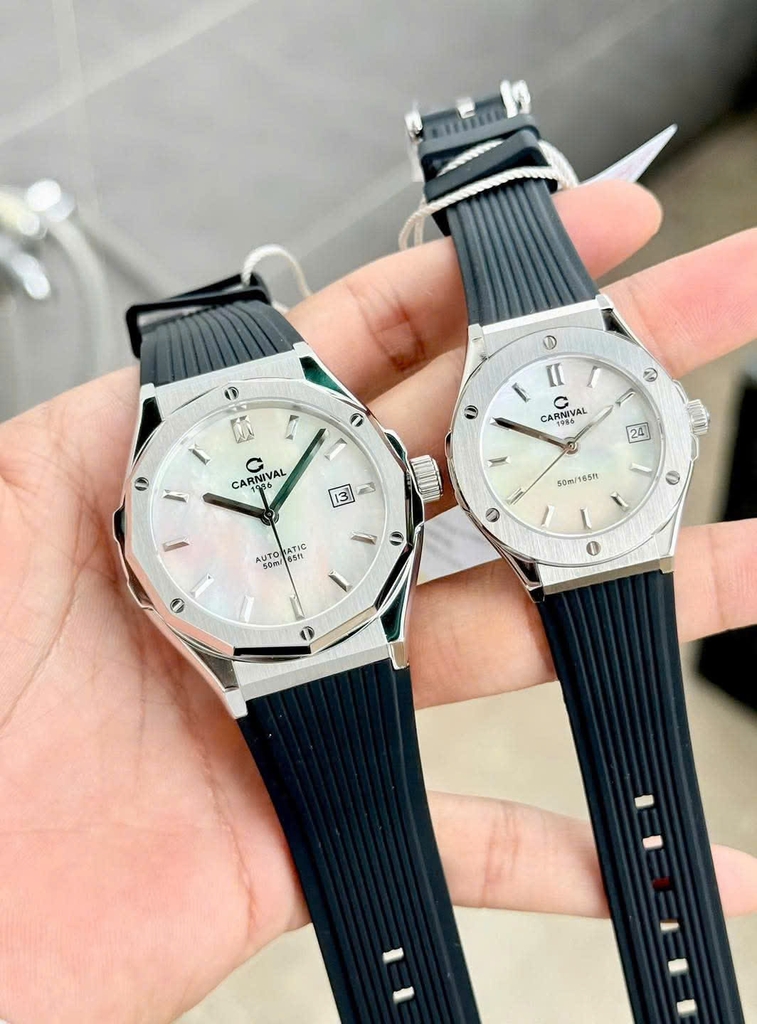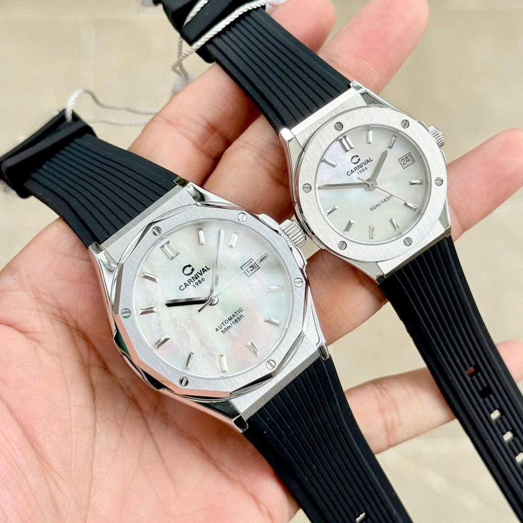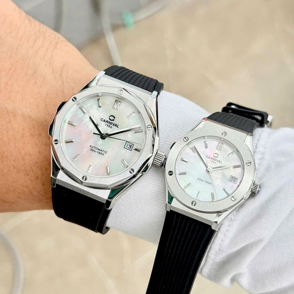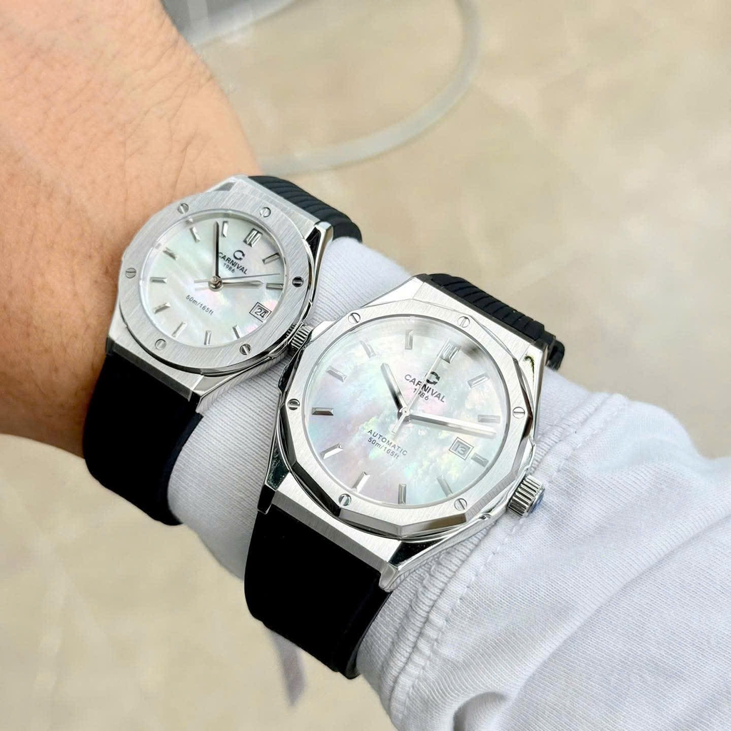 Phiên bản CARNIVAL 8168 mặt xà cừ (Mother of Pearl – MOP) mang đến vẻ đẹp tinh tế và đẳng cấp bậc nhất trong dòng đồng hồ đôi hiện đại. Lớp xà cừ tự nhiên tạo hiệu ứng chuyển sắc huyền ảo dưới ánh sáng, biến mỗi góc nhìn thành một trải nghiệm thị giác khác biệt.