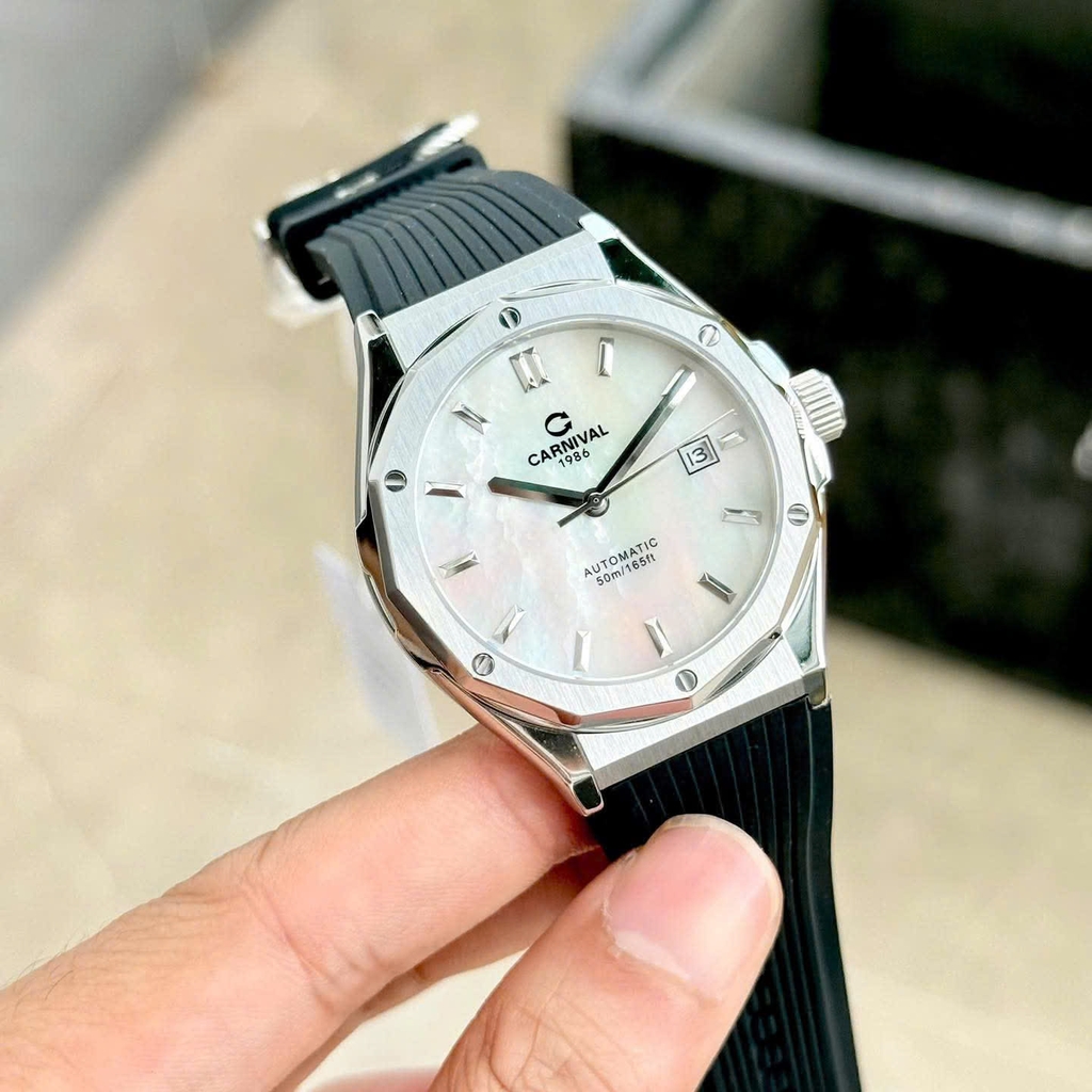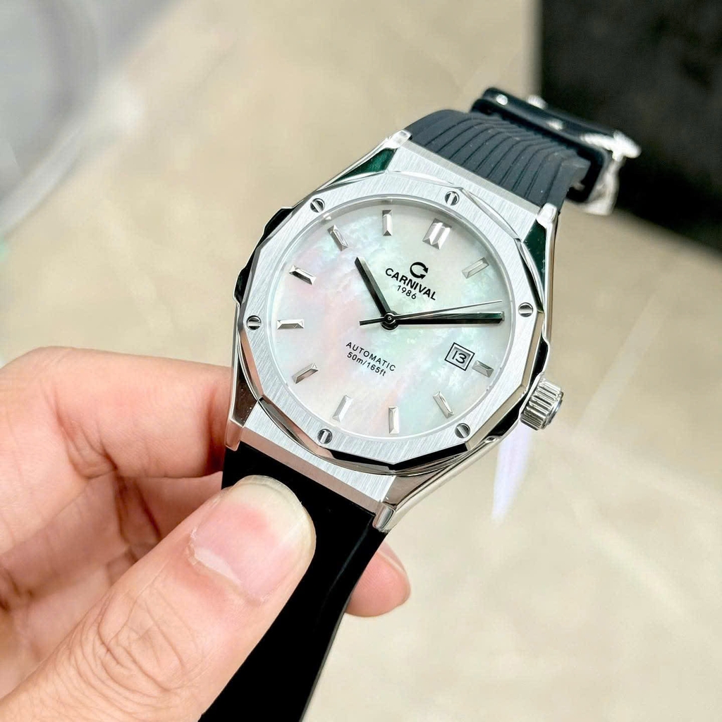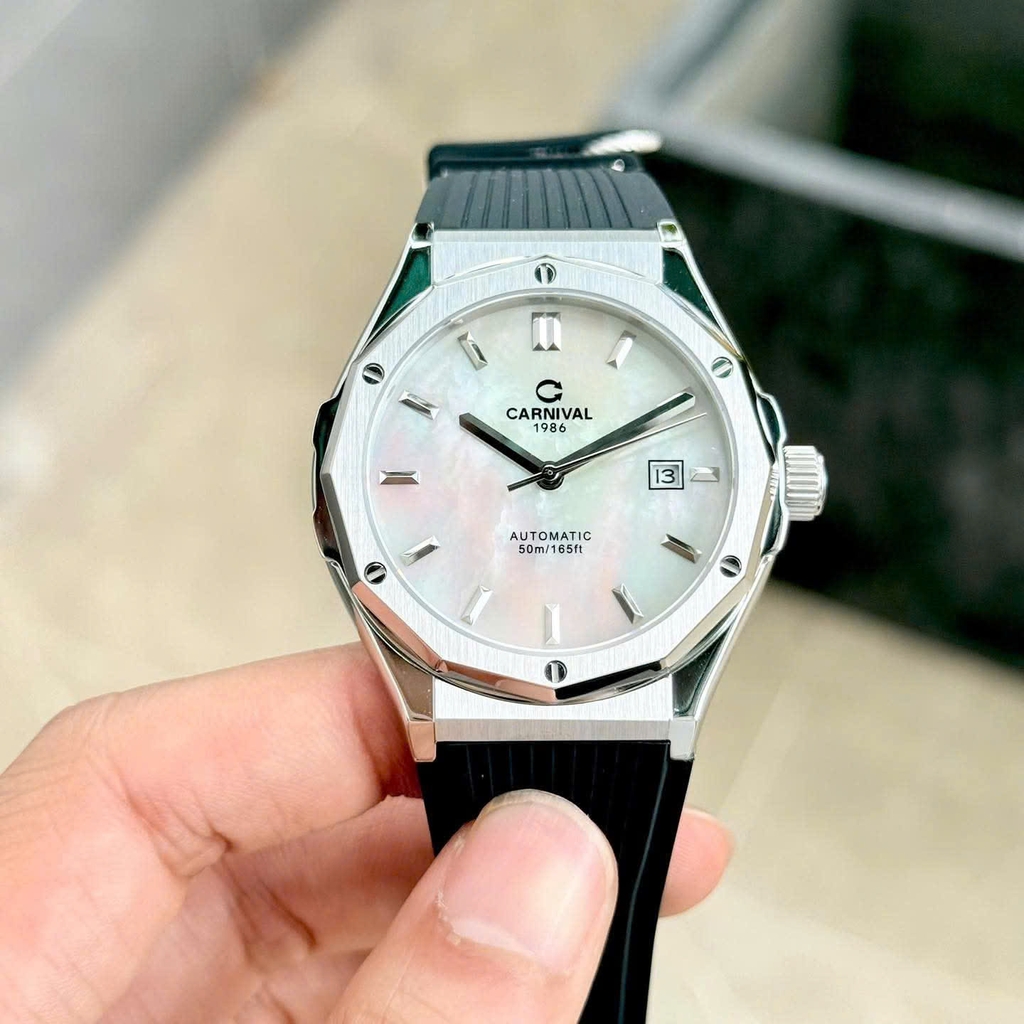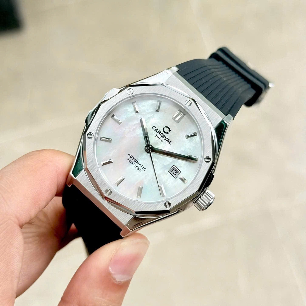 Phiên bản CARNIVAL 8168 mặt xà cừ (Mother of Pearl – MOP) mang đến vẻ đẹp tinh tế và đẳng cấp bậc nhất trong dòng đồng hồ đôi hiện đại. Lớp xà cừ tự nhiên tạo hiệu ứng chuyển sắc huyền ảo dưới ánh sáng, biến mỗi góc nhìn thành một trải nghiệm thị giác khác biệt.