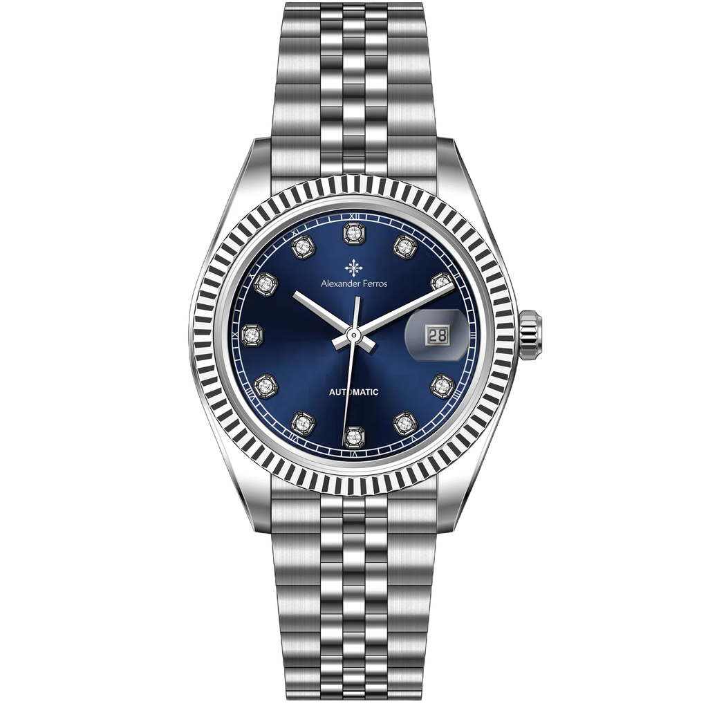 Alexander Ferros 8132S/05 là phiên bản sử dụng mặt số xanh navy trong dòng 8132S – dòng sản phẩm hướng đến phân khúc đồng hồ cơ phổ thông với thiết kế dễ tiếp cận và cấu hình ổn định