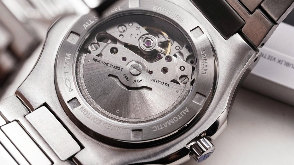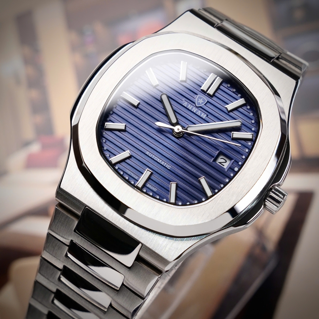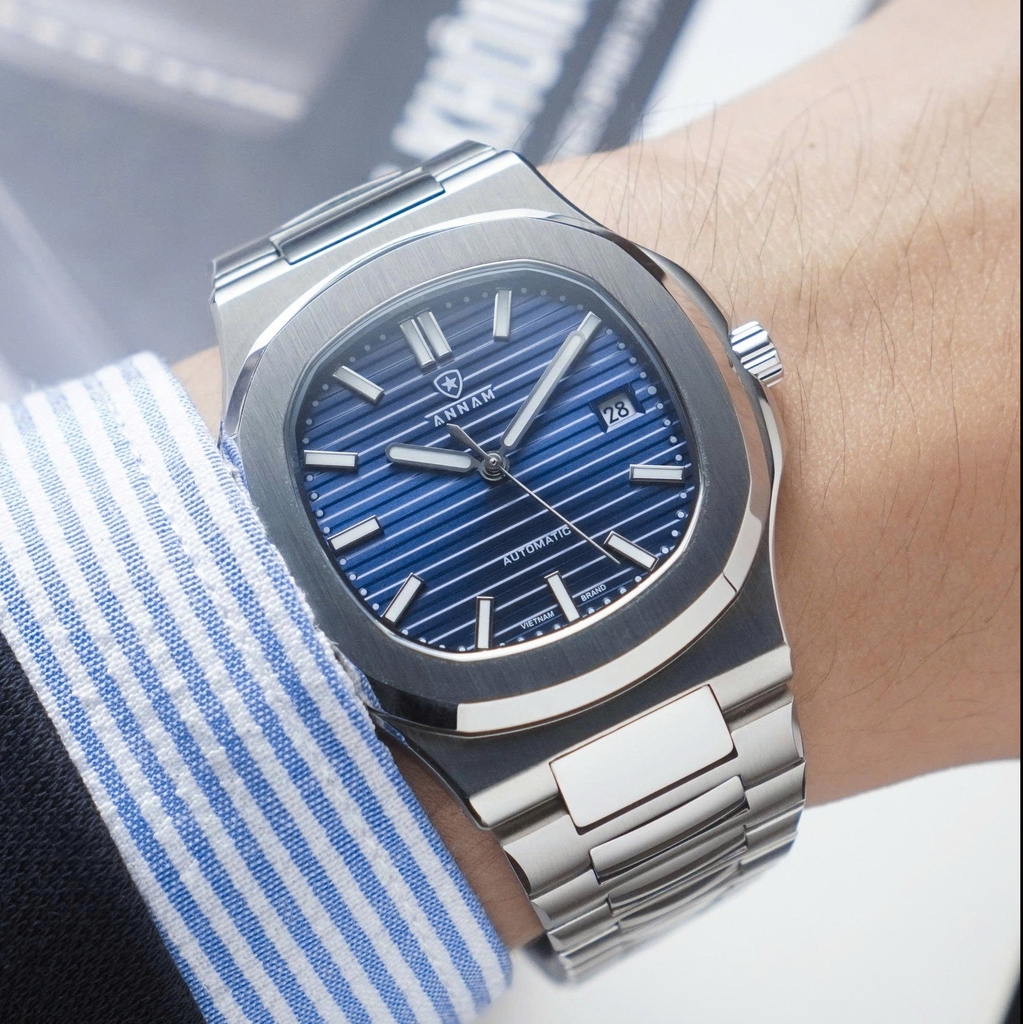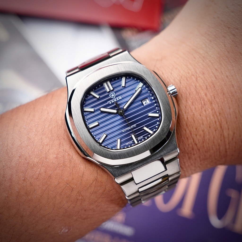 Chiếc Đồng hồ tâm huyết của người Việt AN NAM HN-000X Limited Edition kết tinh giữa đam mê chế tác và tinh thần tự hào dân tộc. Mặt số xanh navy sang trọng với họa tiết vân ngang tinh xảo, bộ vỏ thép không gỉ sắc nét, cùng máy Automatic chuẩn chỉnh cho cảm giác vận hành mượt mà.