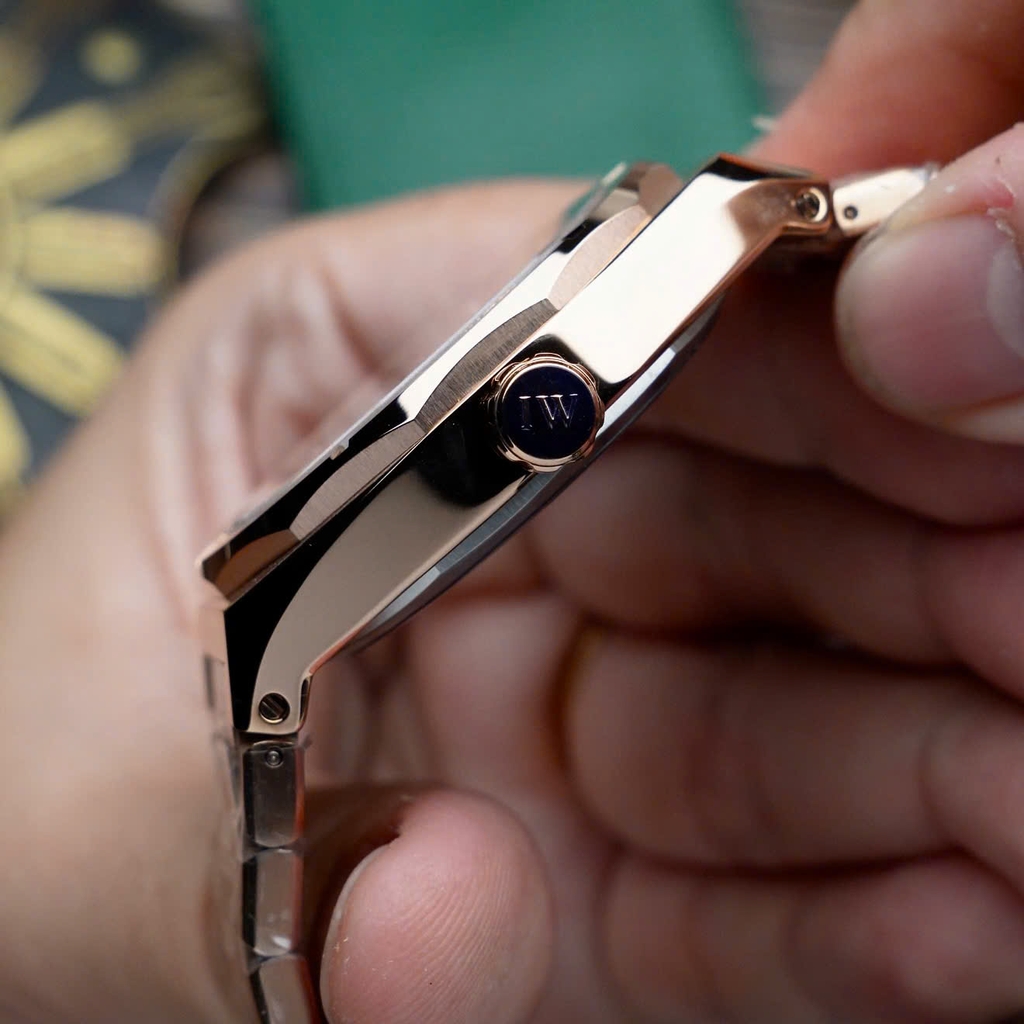 I&W Carnival 751G-T10 sở hữu thiết kế sang trọng với dây thép không gỉ mạ PVD vàng hồng và mặt đen điểm đá tinh tế, tạo vẻ nam tính và hiện đại. Bộ vỏ dáng bát giác lấy cảm hứng từ phong cách thể thao–xa xỉ, vừa mạnh mẽ vừa thời thượng. Mặt số trang bị lịch thứ–ngày tiện lợi, kết hợp máy Automatic cho trải nghiệm đeo mượt mà và đẳng cấp. Đây là lựa chọn lý tưởng cho anh em cần một chiếc đồng hồ đẹp, nổi bật và bền bỉ trong mọi hoàn cảnh.