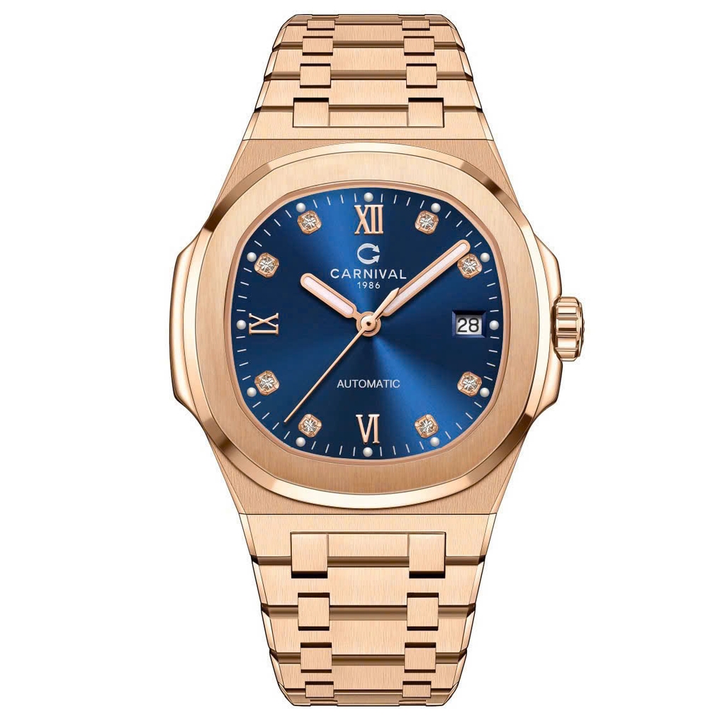 Đồng hồ nam Carnival 8160G-VH-X là mẫu đồng hồ không chỉ đẹp về mặt thiết kế mà còn mạnh mẽ về công năng. Sở hữu thiết kế sang trọng và hiện đại, vỏ và dây đeo được mạ PVD vàng hồng tạo nên vẻ ngoài thanh lịch và đẳng cấp. Mặt số có tông màu xanh tươi mát kết hợp cùng với các cọc số đính đá lấp lánh, làm tăng thêm sự sang trọng. Đây là mẫu đồng hồ thực sự đáng sở hữu cho các tín đồ yêu thích phong cách đơn giản nhưng vẫn sang trọng và nổi bật.