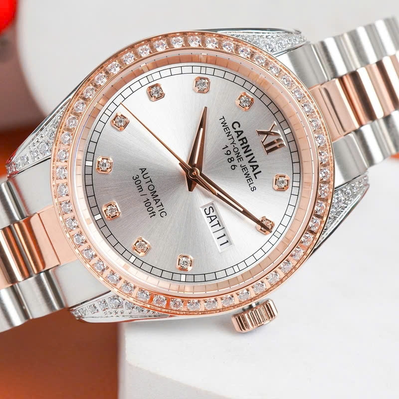| Chất liệu dây đeo | - Thép không gỉ mạ PVD - Màu vàng hồng - Khóa bướm |