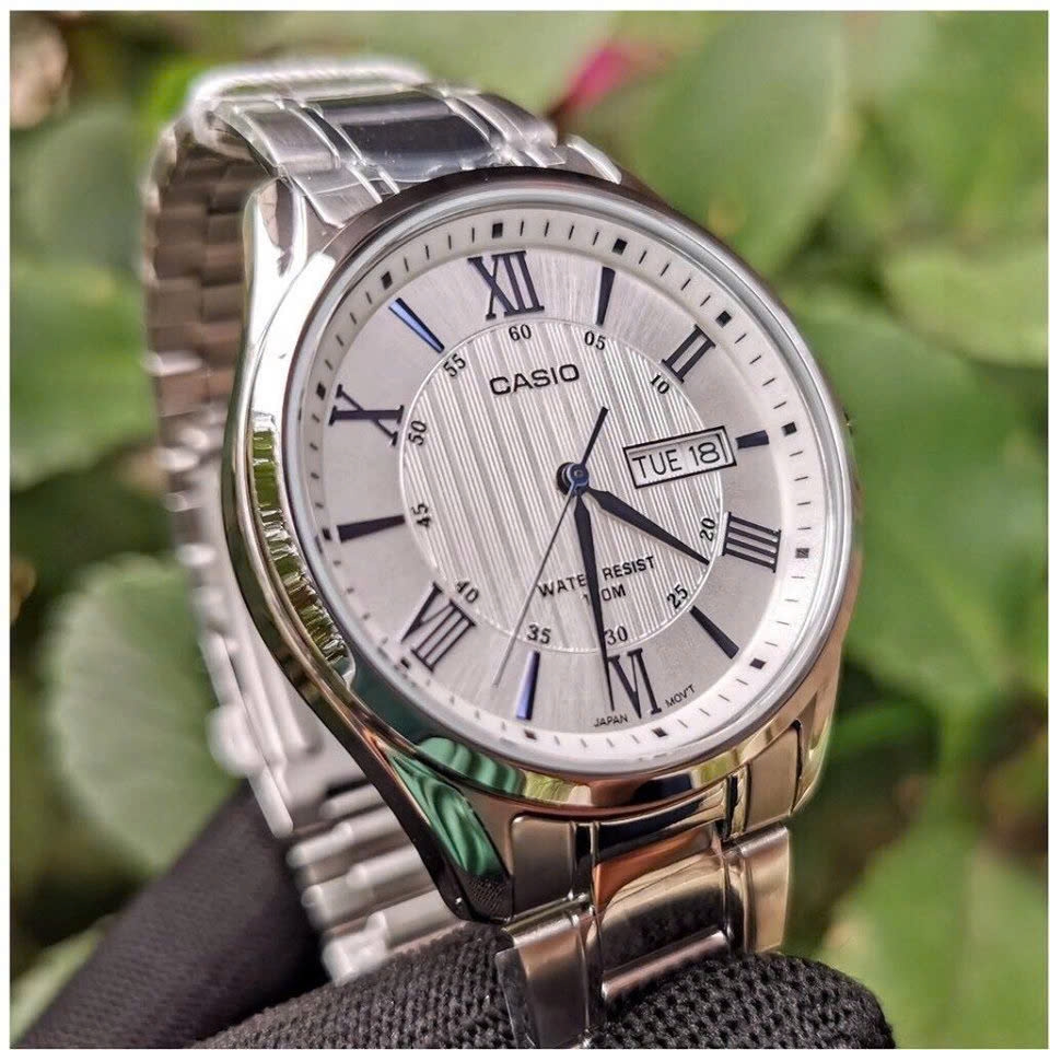 Casio MTP-1384D-7A2VDF mang vẻ đẹp tinh tế với mặt số bạc sang trọng, điểm nhấn kim xanh sắc nét như ngọn lửa đầy quyền uy. Thiết kế cổ điển với cọc số La Mã, lịch ngày thứ tiện lợi, kết hợp cùng dây thép không gỉ chắc chắn, tạo nên phong cách lịch lãm cho quý ông hiện đại. Một lựa chọn hoàn hảo cho những ai yêu thích sự tinh giản nhưng vẫn đầy cuốn hút.