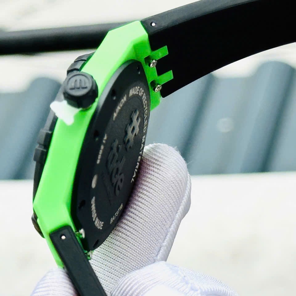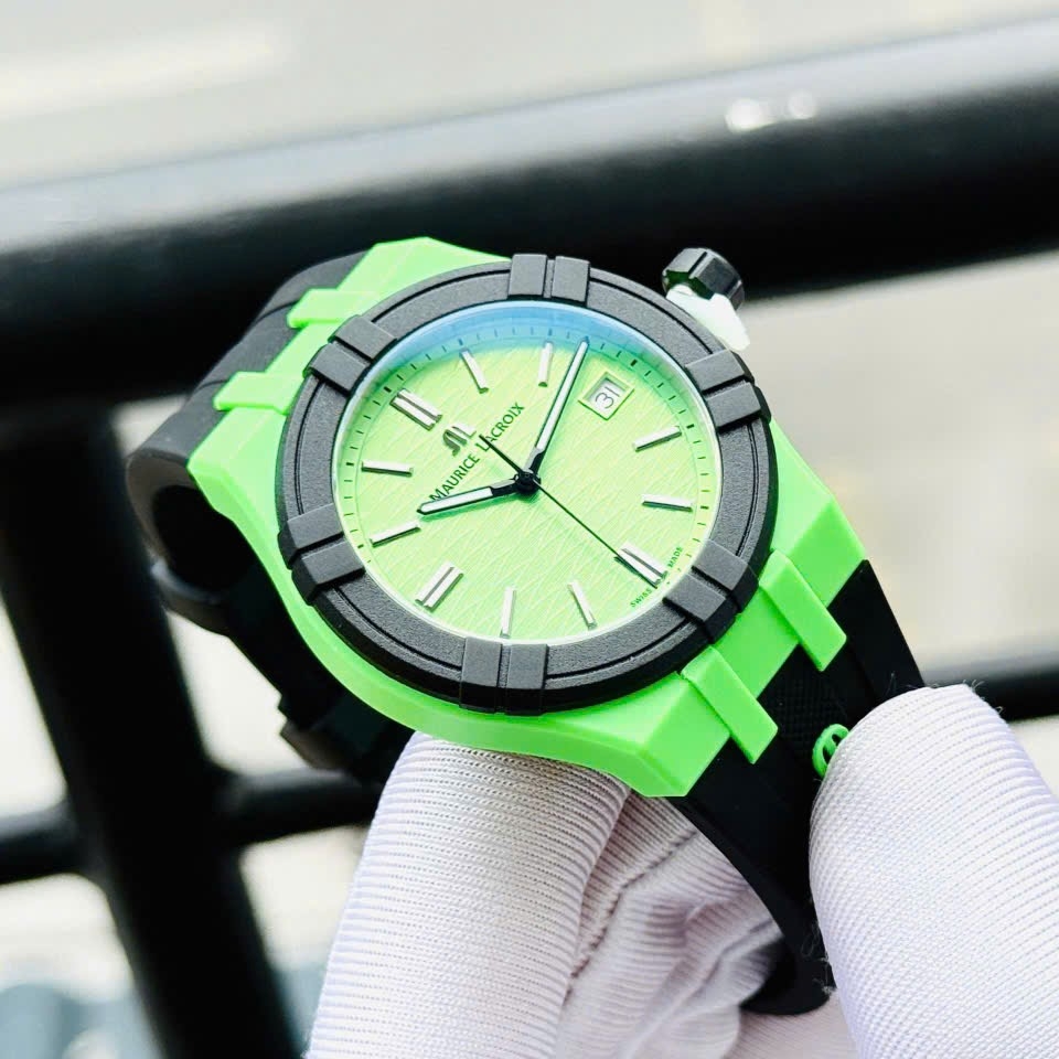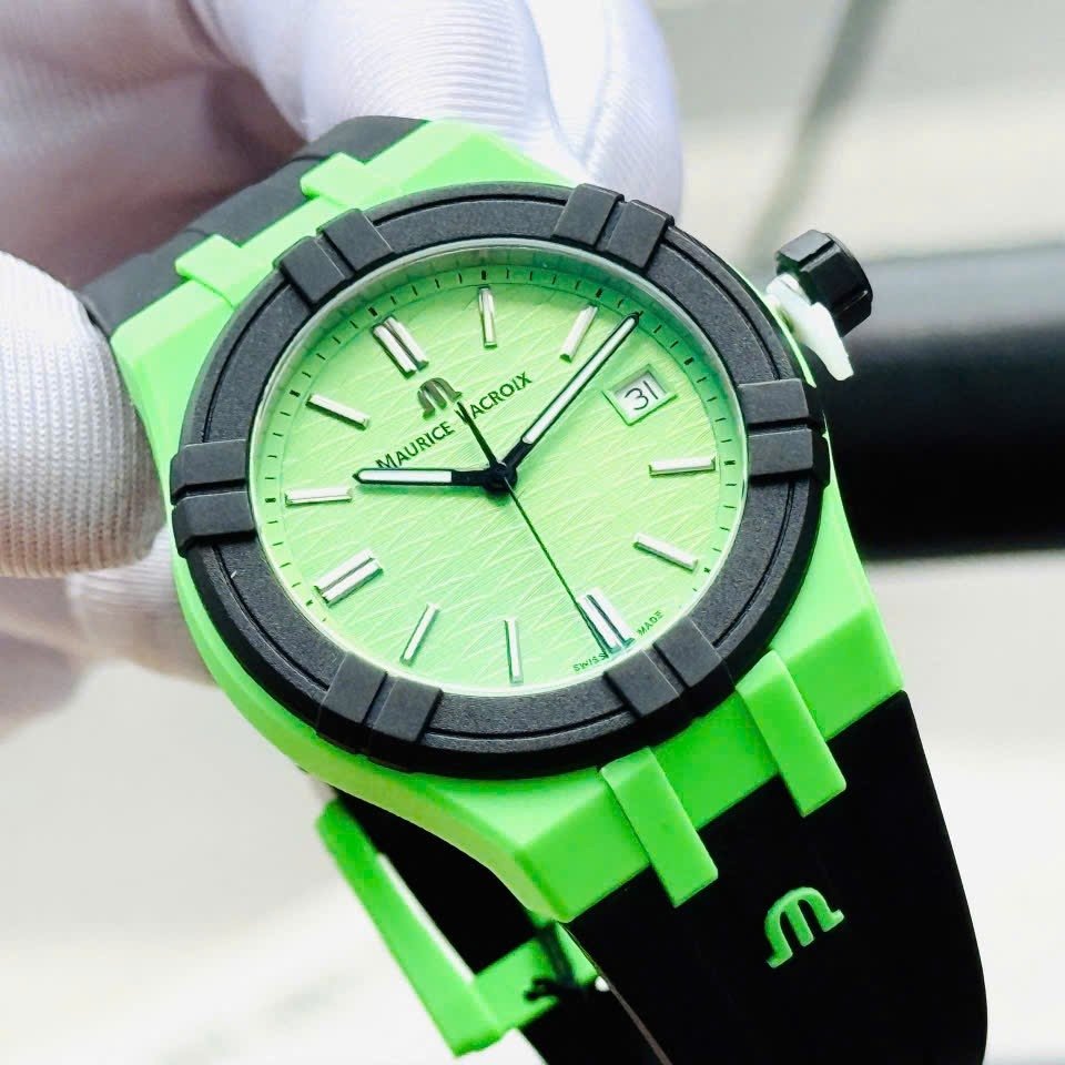 Đồng hồ nam MAURICE LACROIX AIKON #TIDE AI2008-70070-300-0 có thiết kế thể thao và hiện đại. Màu chủ đạo là xanh lá cây nổi bật, kết hợp cùng các chi tiết đen tạo sự mạnh mẽ và cá tính. Logo được in nổi bật trên mặt số và dây đeo, khẳng định đẳng cấp thương hiệu. Điểm đặc biệt của chiếc đồng hồ này là vỏ làm từ 100% nhựa tái chế từ đại dương #tide Đây là chiếc đồng hồ lý tưởng cho những ai yêu thích phong cách trẻ trung, năng động và độc đáo.