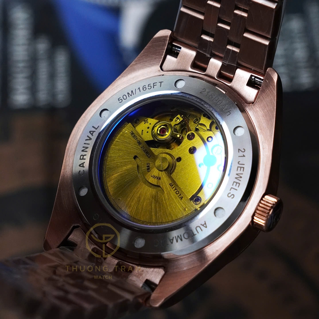 | Dòng máy | Cơ/Automatic Japan: Miyota - Tần số dao động 21.600 vph - Sai số -20~+40 giây/ngày - Trữ cót khoảng tiếng - 21 chân kính |
