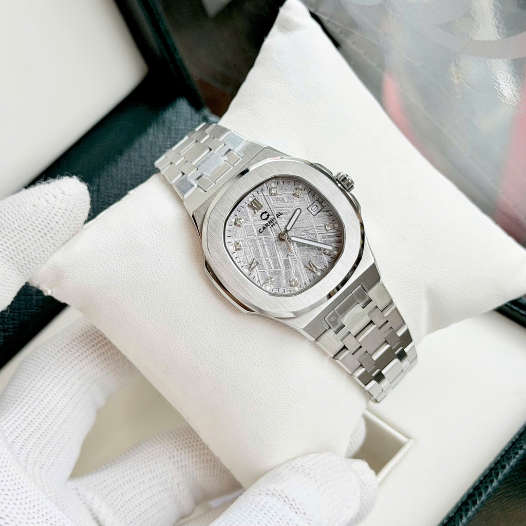 Mẫu đồng hồ nữ 8160L-VT-TT sở hữu thiết kế hiện đại với tông bạc chủ đạo, toát lên vẻ đẹp sang trọng và tinh tế. Mặt số được chạm khắc họa tiết độc đáo, kết hợp cùng bộ dây thép không gỉ sáng bóng, mang lại phong cách thanh lịch và thời thượng cho phái đẹp. Đây là lựa chọn lý tưởng cho những ai yêu thích sự tối giản nhưng vẫn muốn khẳng định đẳng cấp.