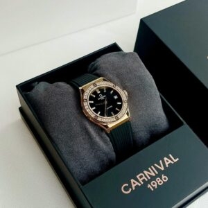 Tựa như ánh trăng soi trên mặt nước, đồng hồ tỏa sáng nhẹ nhàng với sắc ngọc tinh khiết. Vỏ vàng hồng đính đá lấp lánh bao quanh mặt số tạo nên vẻ đẹp vừa thanh thoát vừa sang trọng, khiến cổ tay người đeo trở thành điểm nhấn đầy cuốn hút.