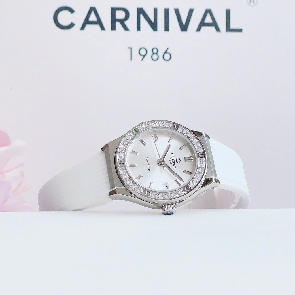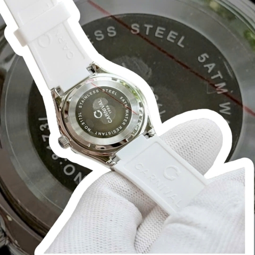 Tựa như ánh trăng soi trên mặt nước, đồng hồ tỏa sáng nhẹ nhàng với sắc ngọc tinh khiết. Vỏ thép đính đá lấp lánh bao quanh mặt số tạo nên vẻ đẹp vừa thanh thoát vừa sang trọng, khiến cổ tay người đeo trở thành điểm nhấn đầy cuốn hút.