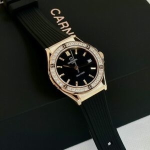 Tựa như ánh trăng soi trên mặt nước, đồng hồ tỏa sáng nhẹ nhàng với sắc ngọc tinh khiết. Vỏ vàng hồng đính đá lấp lánh bao quanh mặt số tạo nên vẻ đẹp vừa thanh thoát vừa sang trọng, khiến cổ tay người đeo trở thành điểm nhấn đầy cuốn hút.