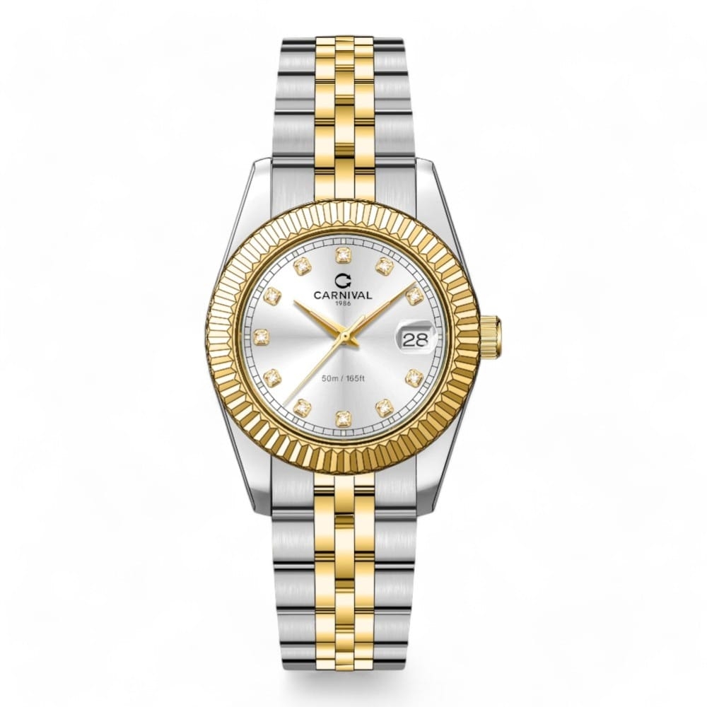 Đồng hồ nữ Carnival Quartz trắng 8131L-CV-T mang đến sự thuần khiết và thanh lịch. Khi kết hợp cùng dây demi vàng vàng, thiết kế trở nên nổi bật với vẻ đẹp rạng rỡ nhưng vẫn tinh tế, sang trọng.