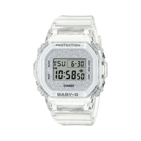 Chiếc đồng hồ Casio Baby-G BGD-565GC-7DR sở hữu thiết kế trong suốt thời thượng kết hợp cùng mặt số kim tuyến bạc lấp lánh, mang đến vẻ đẹp tinh tế, hiện đại và đầy cuốn hút. Vỏ và dây nhựa cao cấp với tông trắng trong tạo cảm giác nhẹ nhàng nhưng vẫn vô cùng nổi bật khi lên tay. Mẫu đồng hồ này không chỉ thu hút về mặt thẩm mỹ mà còn nổi bật với độ bền cao nhờ khả năng chống sốc, chống nước 100 mét và loạt tính năng thực tiễn như giờ thế giới, bấm giờ, đếm ngược, báo thức và đèn nền LED. Đây là lựa chọn hoàn hảo cho những cô nàng cá tính yêu thích sự thanh lịch pha chút nổi bật tinh tế.