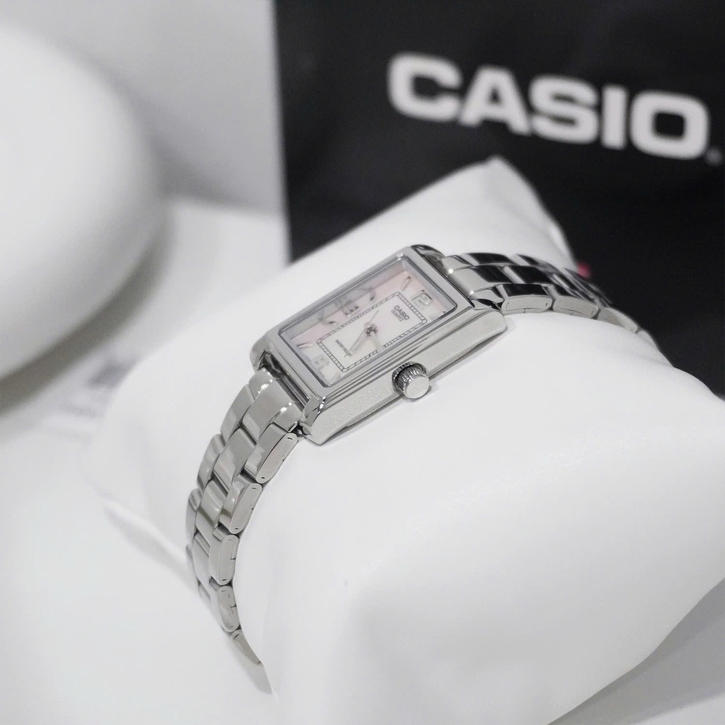 Chiếc đồng hồ Casio LTP-1234DS-4ADF sở hữu mặt số màu hồng xà cừ bắt mắt, tạo nên vẻ đẹp nữ tính và sang trọng. Vỏ và dây đeo được làm từ thép không gỉ, mang lại độ bền cao và cảm giác thoải mái khi đeo. Các cọc số dạng vạch thanh mảnh cùng kim chỉ giờ tinh tế giúp dễ dàng xem giờ một cách rõ ràng. Thiết kế nhỏ gọn, phù hợp với cổ tay của phái đẹp, đặc biệt thích hợp để đeo trong các dịp công sở hoặc sự kiện trang trọng. Với phong cách cổ điển pha chút hiện đại, Casio LTP-1234DS-4ADF là một lựa chọn hoàn hảo cho những ai yêu thích sự thanh lịch và tinh tế.