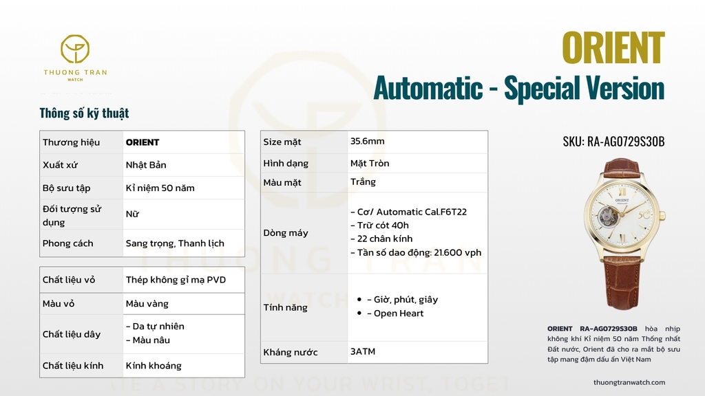 Đồng hồ nữ ORIENT Phiên bản đặc biệt RA-AG0729S30B hòa nhịp không khí Kỉ niệm 50 năm Thống nhất Đất nước, Orient đã cho ra mắt bộ sưu tập mang đậm dấu ấn Việt Nam.