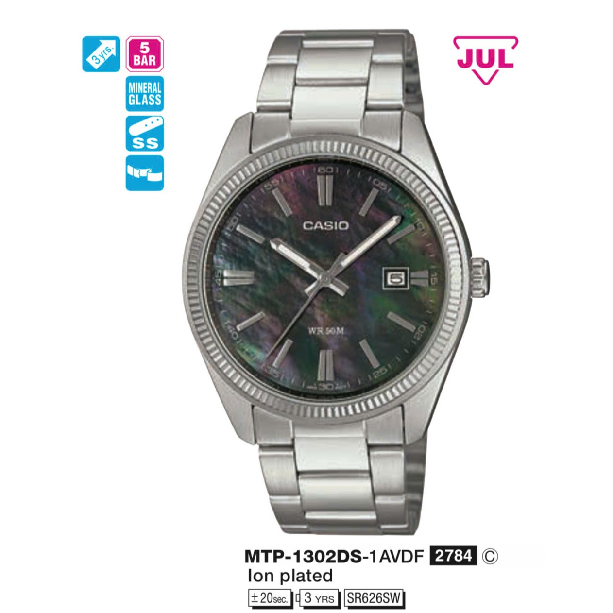 - So với các dòng đồng hồ khác trong cùng tầm giá: Casio MTP-1302 có thiết kế tinh tế hơn - Vật liệu cao cấp hơn (dây kim loại, mặt khảm trai, kính khoáng)