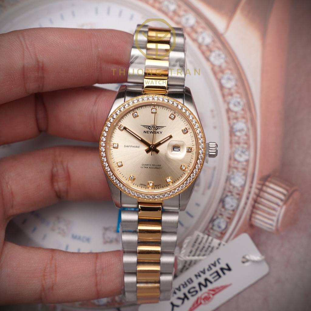 Mang đậm phong cách hoàng gia Ai Cập, chiếc đồng hồ NEWSKY NS5021L.S04 là hiện thân của vẻ đẹp thanh lịch và sang trọng mà mọi nữ hoàng hiện đại đều mong muốn sở hữu. Với thiết kế tinh xảo và tinh tế, mặt số màu vàng lấp lánh kết hợp cùng vòng bezel đính đá quý tạo nên sự hài hòa hoàn hảo, giống như những trang sức quý báu từng được các nữ hoàng Ai Cập cổ đại trân quý.