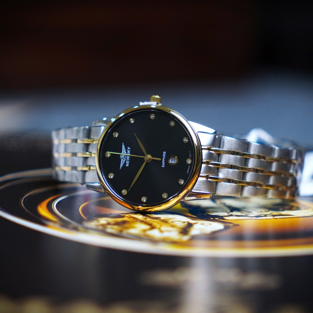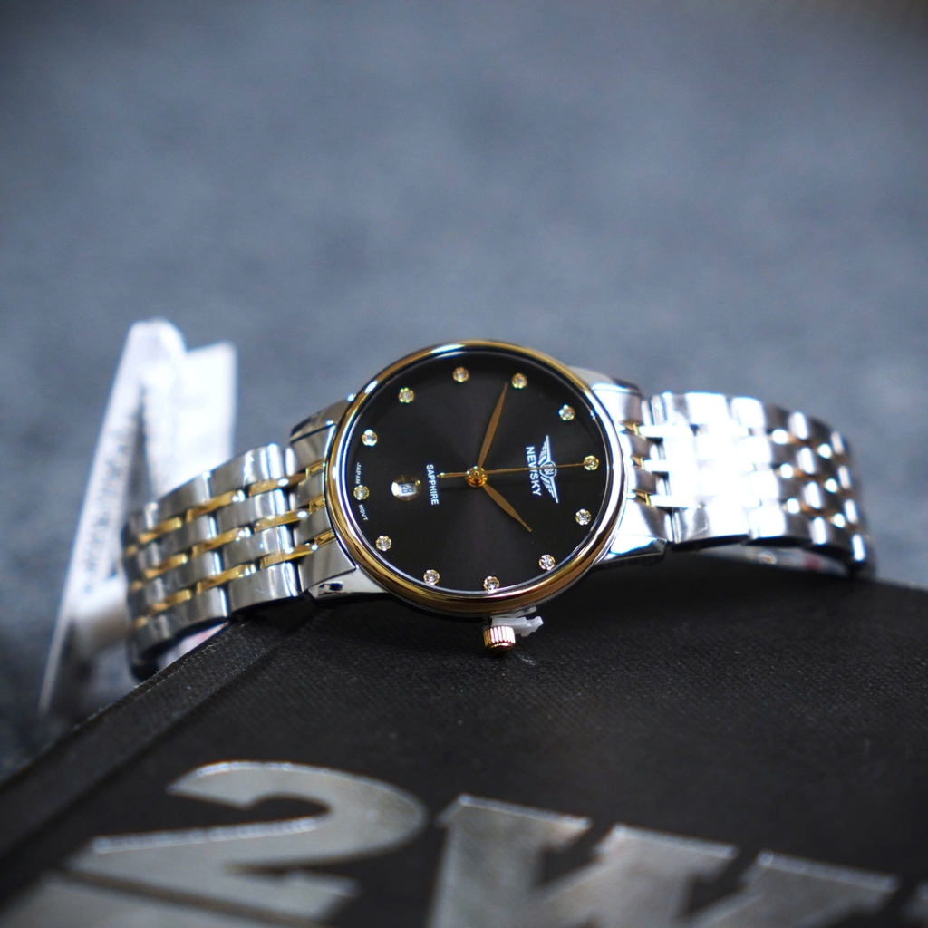 NEWSKY NS5005L.S04 là mẫu đồng hồ nữ với phong cách sang trọng. Mặt đồng hồ được thiết kế tối giản kết hợp cùng cọc số đính đá nổi bật. Các chi tiết trên mặt đồng hồ được sắp xếp cân đối, với kim chỉ và các cọc số thanh mảnh, tạo nên sự trang nhã và tinh tế.
