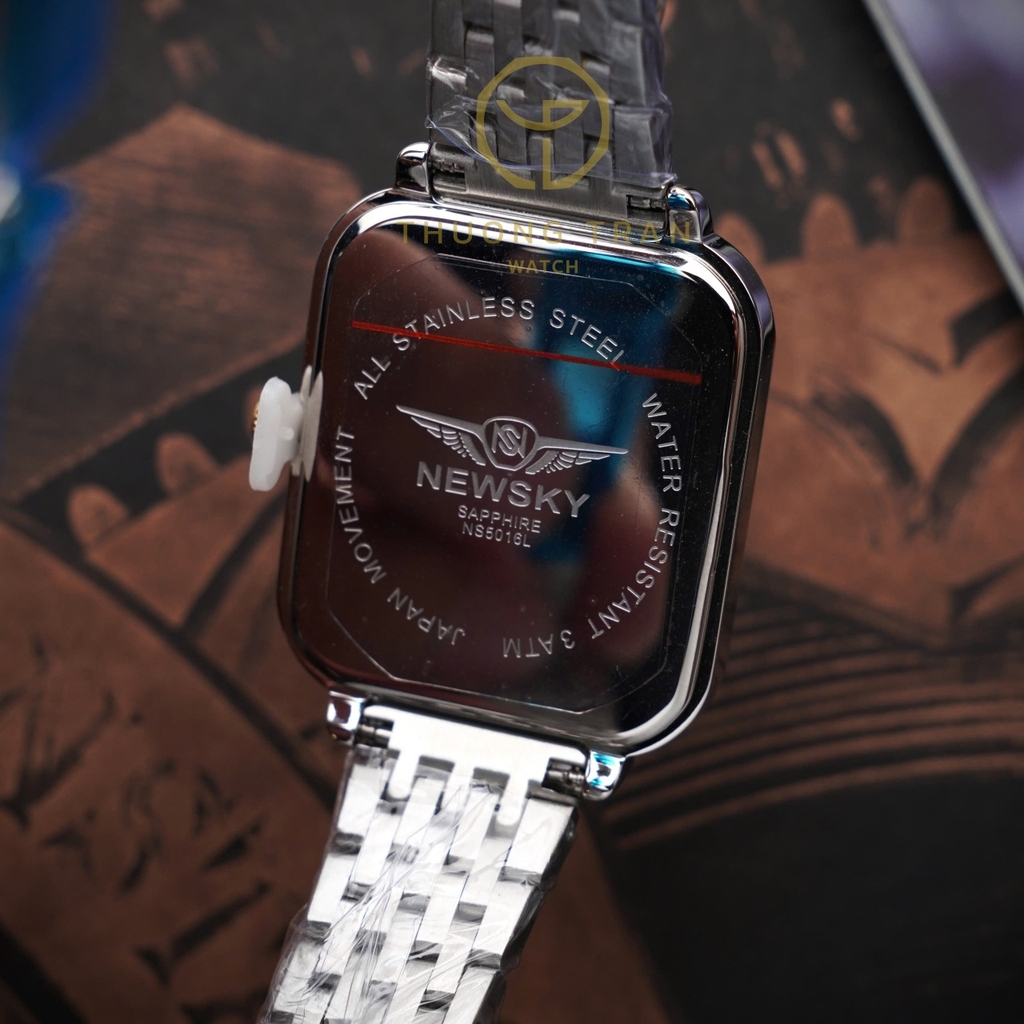 Đồng hồ NEWSKY NS5016L.S04 là sự hòa quyện giữa phong cách cổ điển và hiện đại, với thiết kế mặt số vuông độc đáo mang lại cảm giác sang trọng và đẳng cấp. Mặt số màu trắng thanh lịch, được trang trí bằng các viên đá nhỏ tại các vị trí chỉ giờ, tạo nên điểm nhấn tinh tế và quý phái. Dây đeo kim loại sáng bóng, chắc chắn, mang lại sự thoải mái và bền bỉ cho người đeo. Mặt kính sapphire chống trầy xước, giúp bảo vệ đồng hồ khỏi những tác động bên ngoài, duy trì vẻ đẹp mới mẻ qua thời gian.