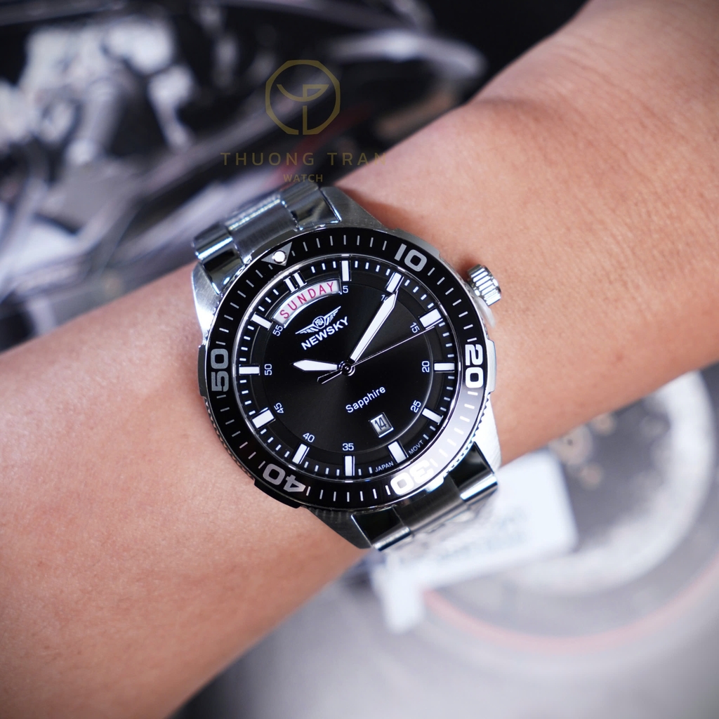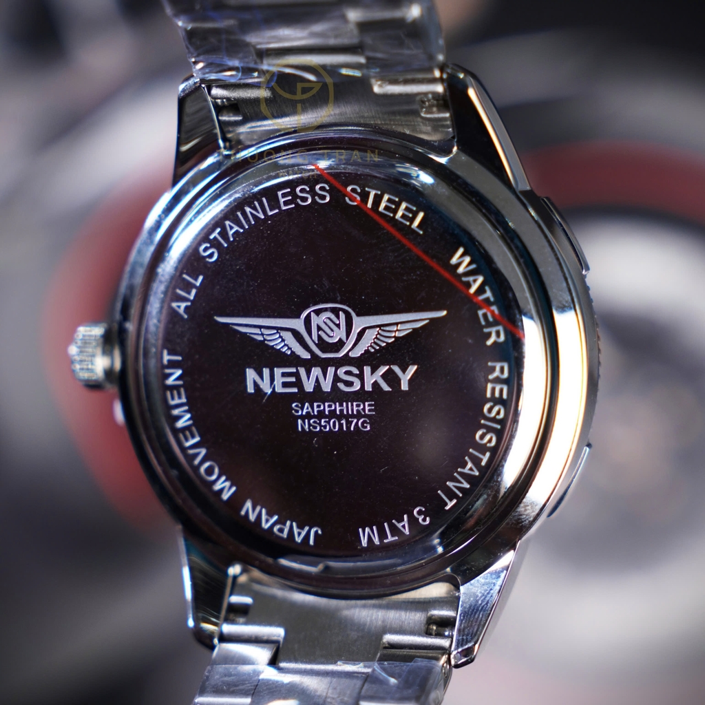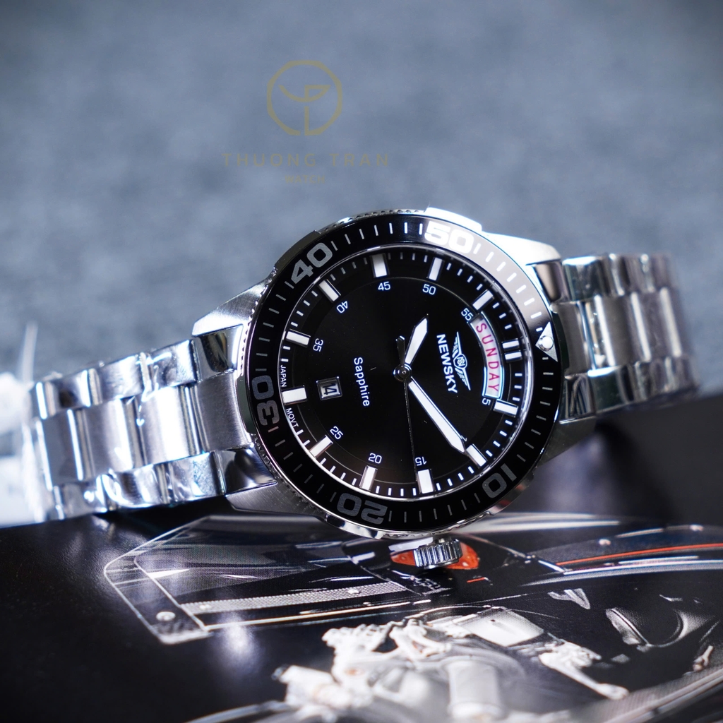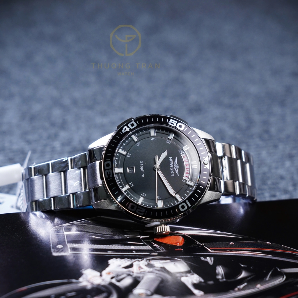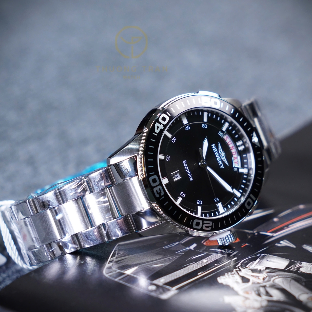 Đồng hồ NEWSKY NS5017G.S01 nổi bật với thiết kế thể thao, sang trọng. Mặt số màu đen với cọc số phủ dạ quang. Khung hiển thị thứ và ngày lần lượt ở vị trí 12h và 6h nổi bật. Vỏ và dây đeo bằng kim loại sáng bóng, bền bỉ, tạo nên vẻ ngoài sang trọng. Đây là một chiếc đồng hồ lý tưởng cho những người yêu thích sự kết hợp giữa phong cách thể thao.
