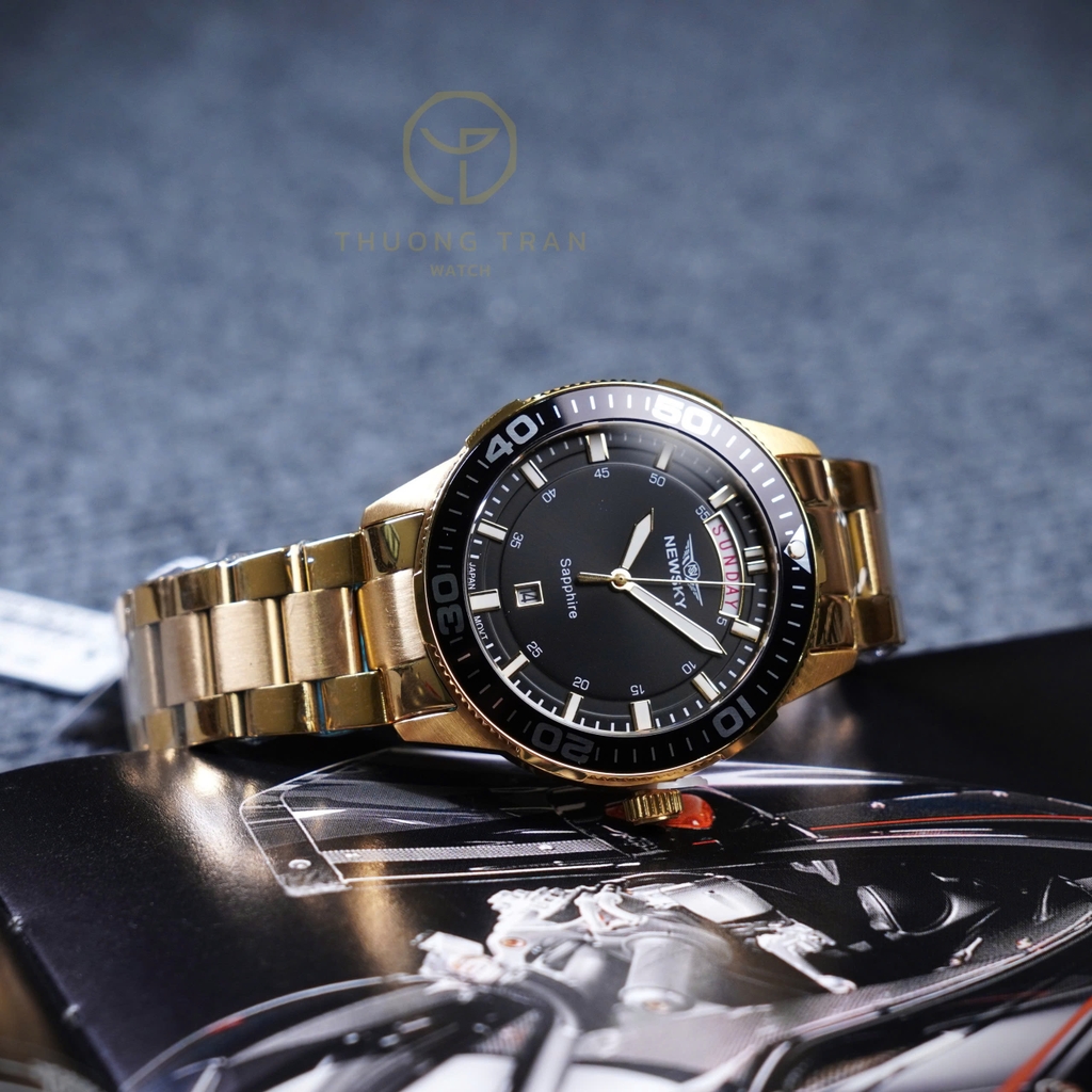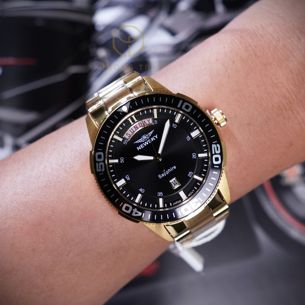 Đồng hồ NEWSKY NS5017G.S03 nổi bật với thiết kế thể thao, sang trọng. Mặt số màu đen với cọc số phủ dạ quang. Khung hiển thị thứ và ngày lần lượt ở vị trí 12h và 6h nổi bật. Vỏ và dây đeo bằng kim loại sáng bóng, bền bỉ, tạo nên vẻ ngoài sang trọng. Đây là một chiếc đồng hồ lý tưởng cho những người yêu thích sự kết hợp giữa phong cách thể thao.