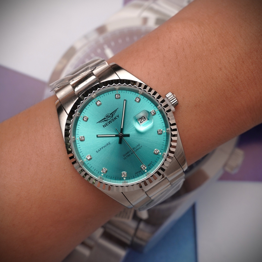 NEWSKY NS5020G.S02 là một mẫu đồng hồ vô cùng nổi bật đến từ nhà Newsky, với mặt số được thiết kế dạng mặt tròn với các cọc số kim cương toát lên vẻ thanh lịch và sang trọng.