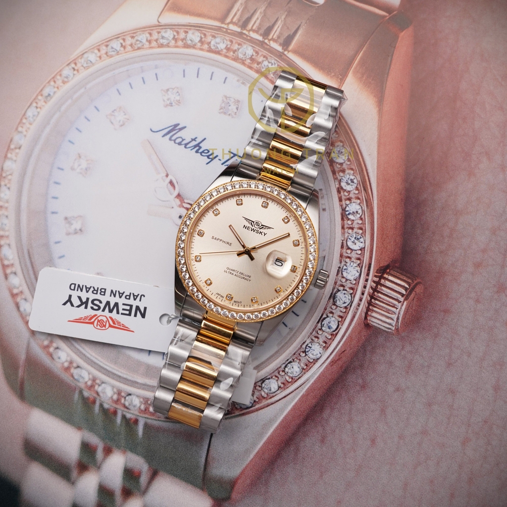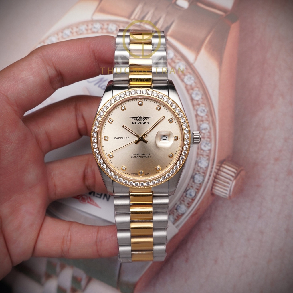 Trong vương quốc của sự sang trọng và quyền lực, chiếc đồng hồ NEWSKY NS5021G.S04 với thiết kế tinh xảo nổi bật như một biểu tượng của sự vương giả. Được chế tác từ thép không gỉ và mạ vàng, kết hợp với vòng bezel đính đá lấp lánh, chiếc đồng hồ này mang đến vẻ đẹp quý phái và uy nghiêm, tựa như sức mạnh của một vị sư tử trong thế giới hoang dã.