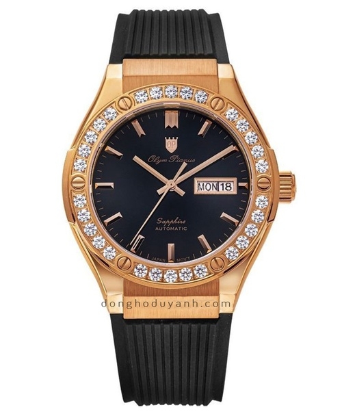 OLYM PIANUS CLASSIC FUSION AUTOMATIC BLACK OP990-45ADGR-GL-D bản thiết kế sang trọng tinh tế, sự kết hợp màu vàng tinh tế và những viên kim cương sang trọng làm nổi bậc chiếc đồng hồ, sự kết hợp đem đến cho người dùng lịch lãm bling bling.