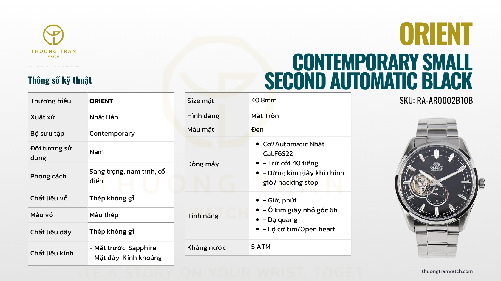 ORIENT BLACK RA-AR0002B10B là mẫu đồng hồ nam size 41mm, phối màu mặt dial đồng hồ đen, đồng hồ lộ cơ tim (open heart) được Orient làm rất tốt trên đồng hồ của họ, ô supdial hiển thị giây góc 6h.