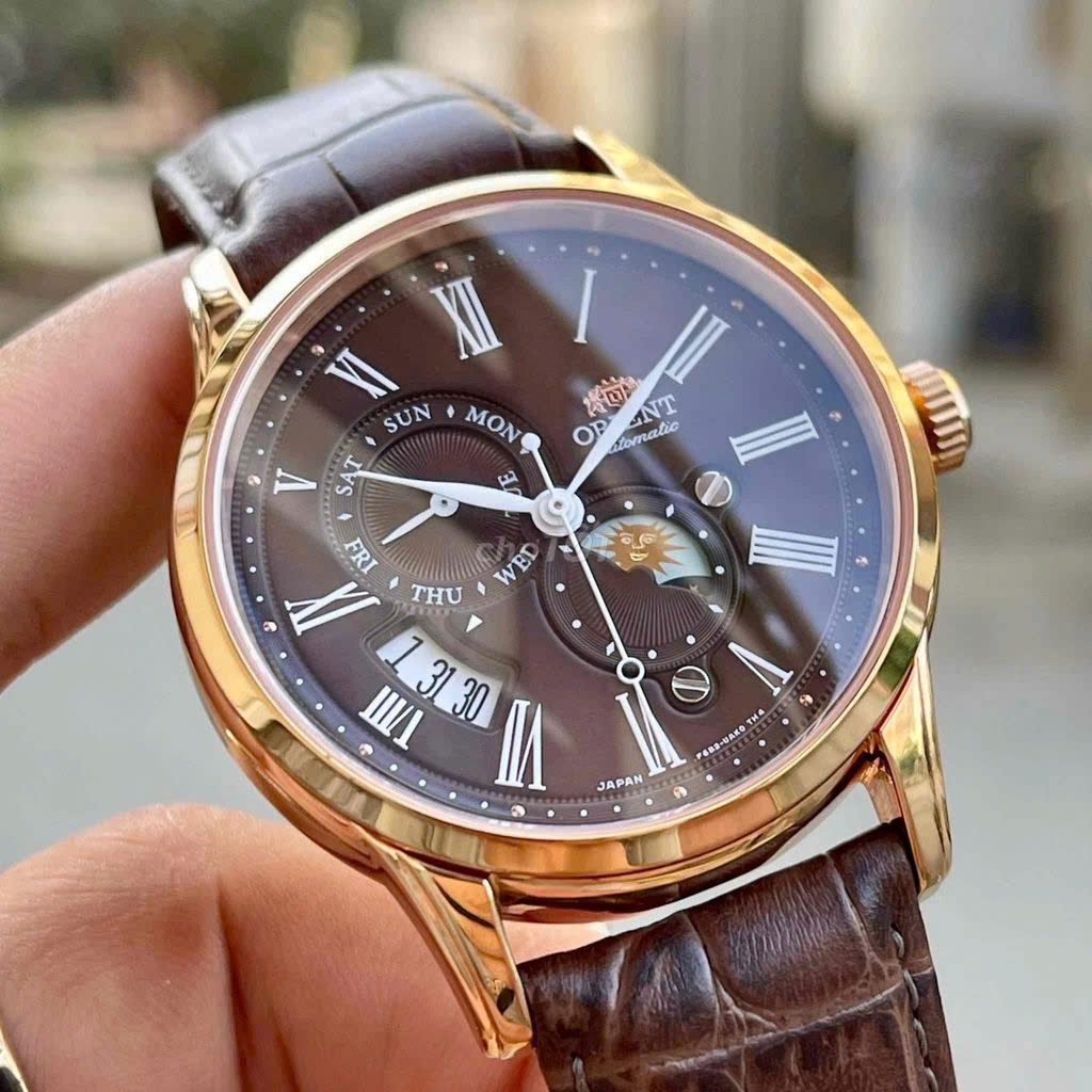 ORIENT SUN AND MOON GEN 3 RA-AK0009T10B như một ly Cafe ấm nóng, ORIENT SUN AND MOON GEN 3 RA-AK0009T10B sở hữu thiết kế lịch lãm với mặt số màu nâu chocolate. Cọc số la mã màu trắng được thiết kế kết hợp với bộ kim cùng tone tạo nên chất Vintage thường thấy trên những chiếc đồng hồ cổ điển