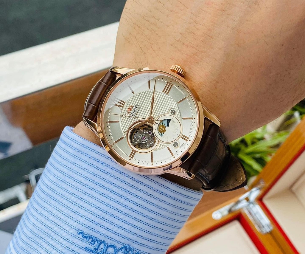 Chiếc đồng hồ ORIENT SUN AND MOON GEN 4 RN-AS0002S (RA-AS0003S10B) mang lại cảm giác như một bản giao hưởng cổ điển, nơi mỗi chi tiết là một nốt trầm ấm, sâu lắng. Sự kết hợp hoàn hảo giữa thiết kế tinh xảo với mặt số Sun & Moon đầy mê hoặc và bộ máy cơ tự động mạnh mẽ bên trong, đồng hồ không chỉ là công cụ để đo thời gian mà còn là món trang sức quý phái.