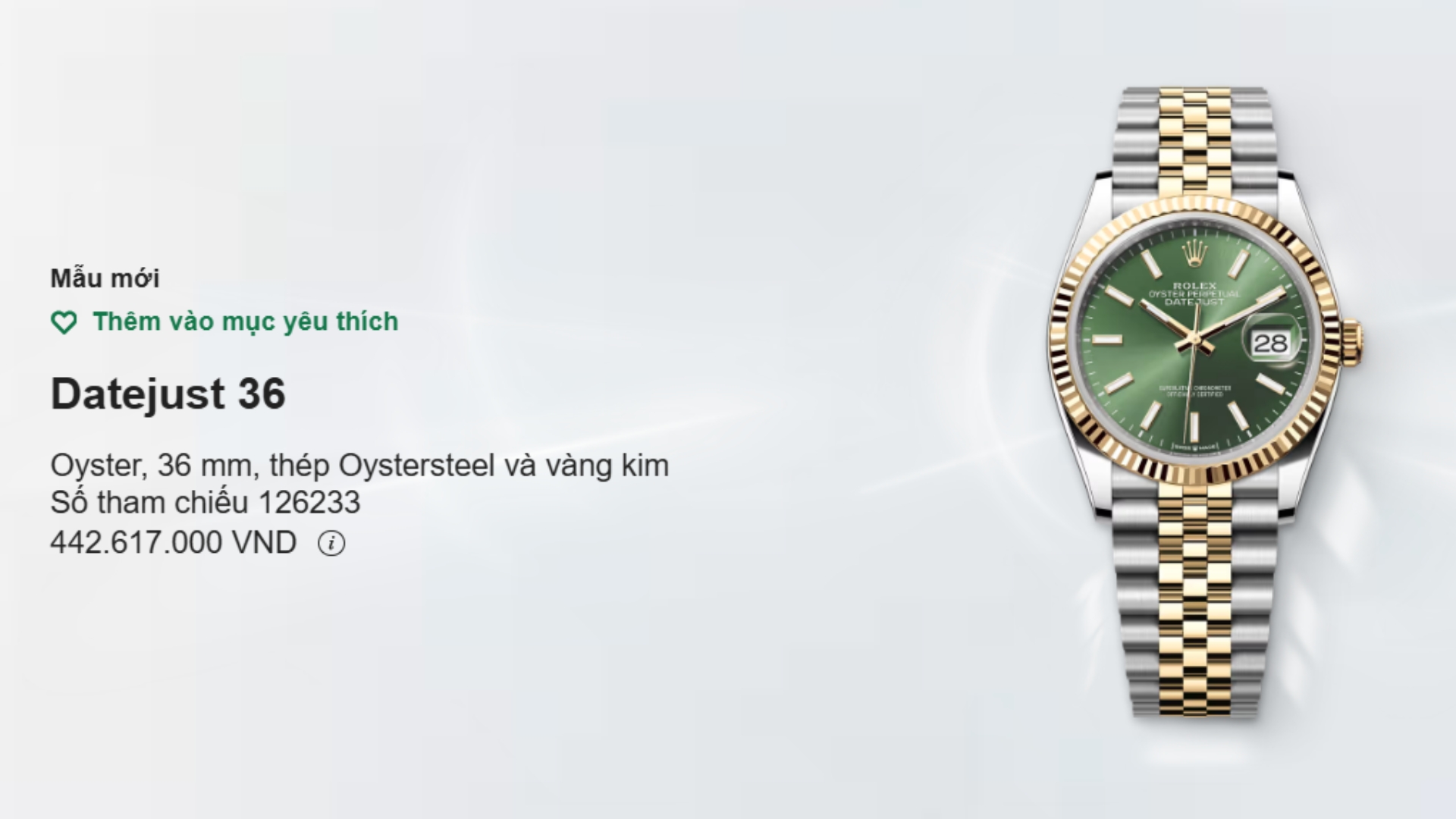 Sự kế thừa từ Day-Date: Màu xanh Olive vốn là màu "đặc sản" của dòng Day-Date vàng khối (mẫu President). Khi đưa màu này lên Datejust Yellow Rolesor, Rolex đã khéo léo mang lại cho người đeo cảm giác của một chiếc đồng hồ vàng khối đắt đỏ hơn nhiều lần