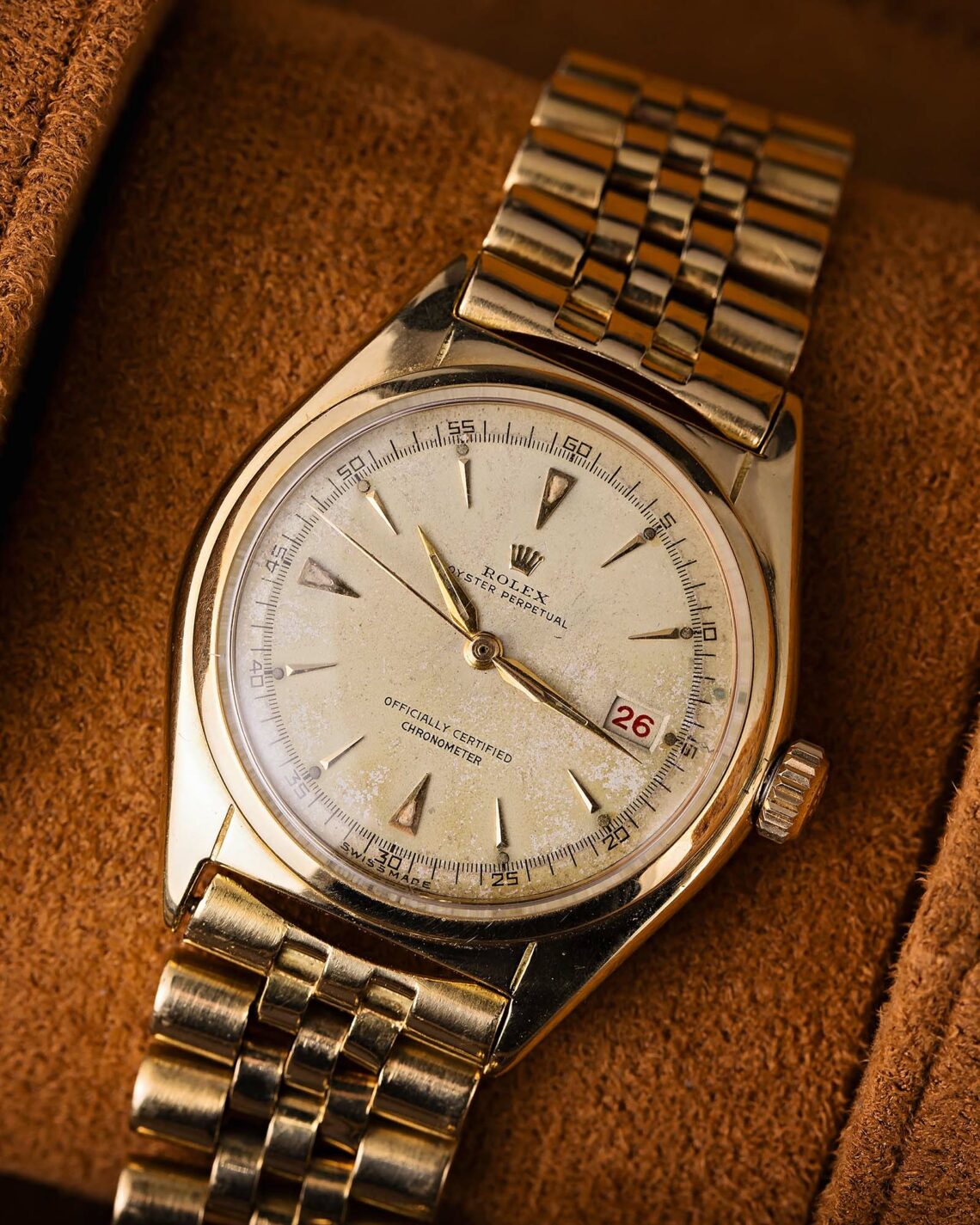 Dây Jubilee: Bộ dây 5 mối nối này vẫn là tiêu chuẩn vàng về sự thoải mái. Sự linh hoạt của các mắt xích nhỏ giúp đồng hồ ôm sát cổ tay mà không gây cảm giác nặng nề
