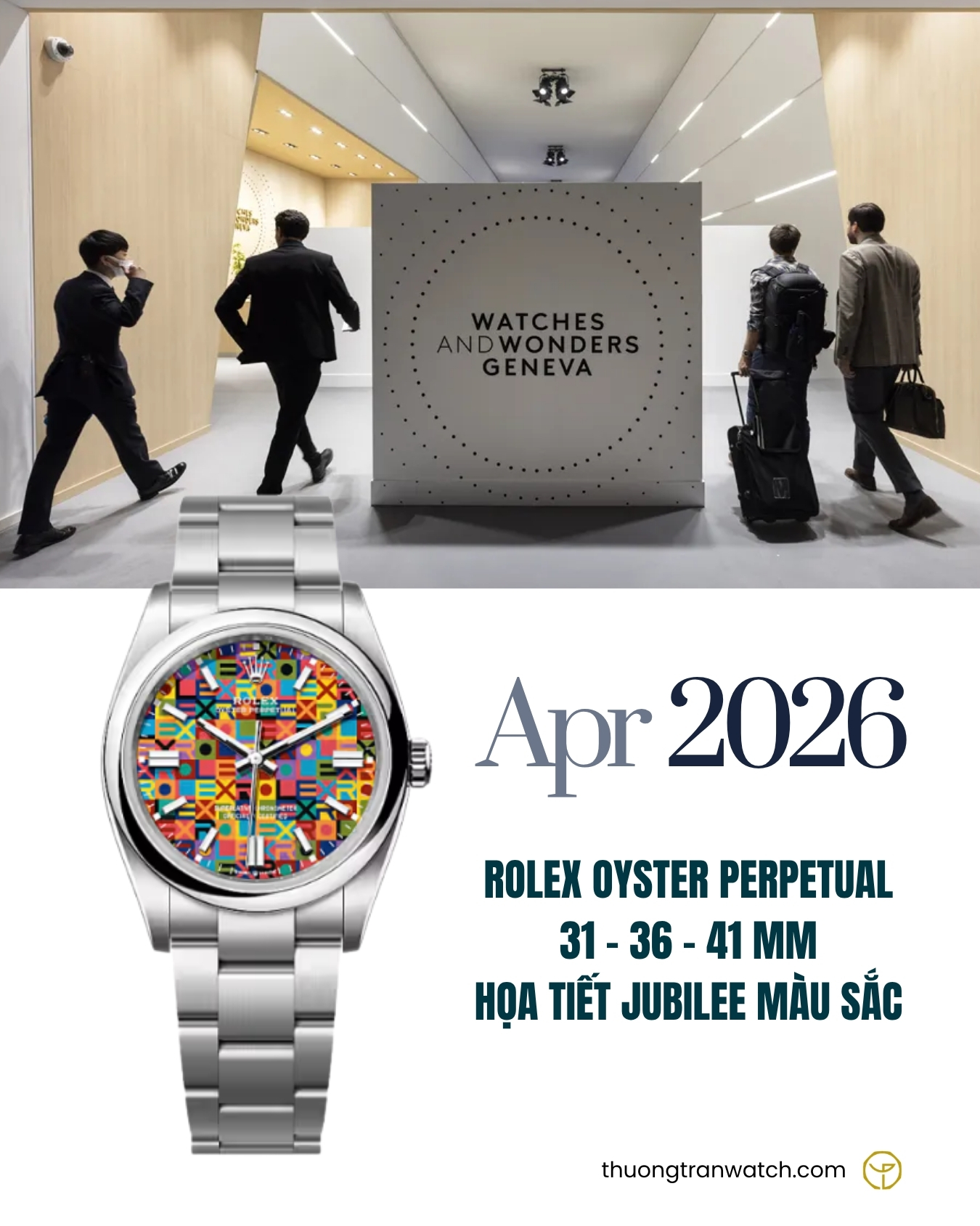 Nếu Watches & Wonders 2023 là tiếng vang của sự nổi loạn với những 'bong bóng' tự do: Oyster Perpetual Celebration-Motif, thì năm 2026 chính là thời điểm Rolex khẳng định bản lĩnh của một đế chế qua mẫu Oyster Perpetual Jubilee-Motif