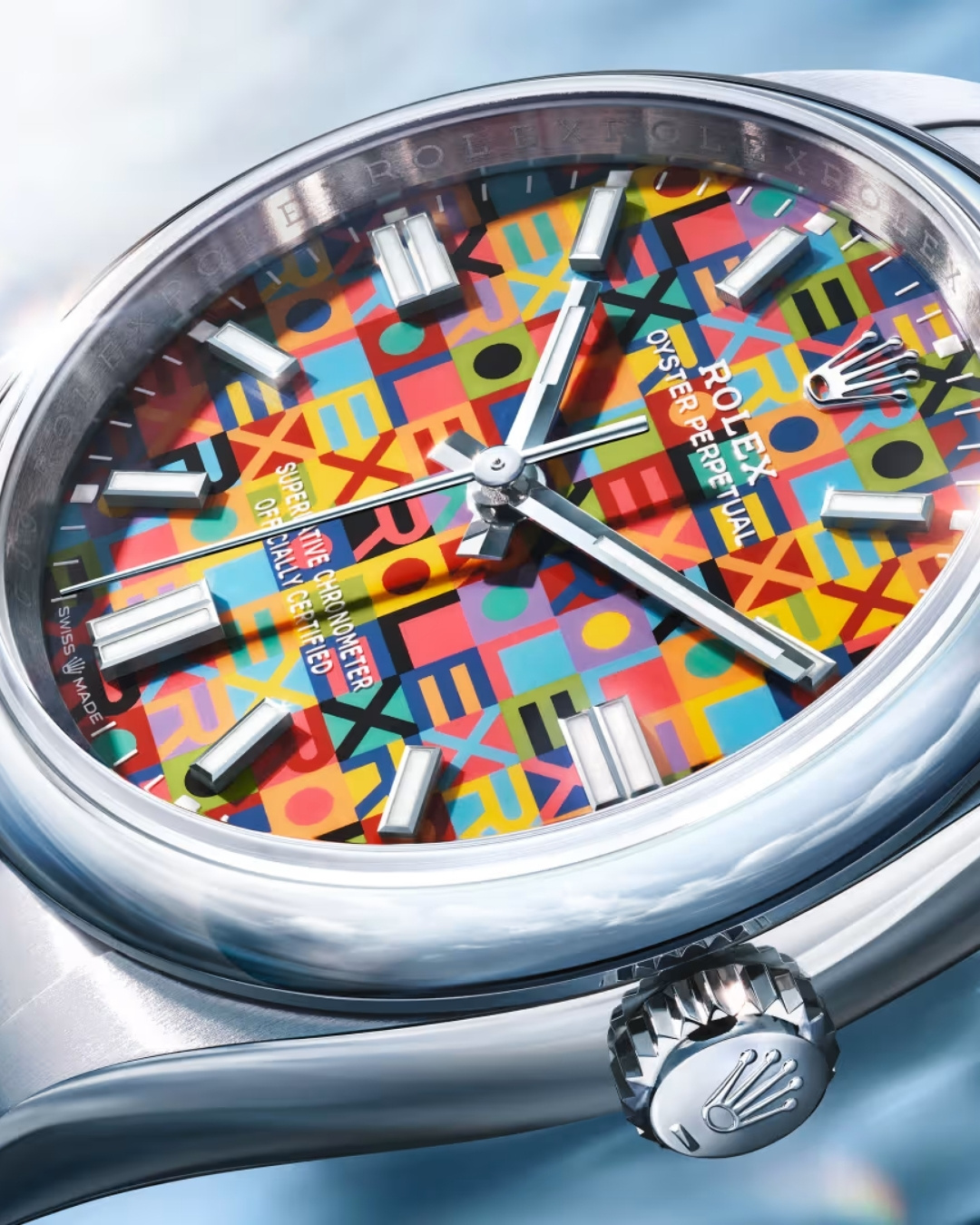 Mặt số Celebration là sự tổng hòa của tất cả các màu sắc đơn sắc mà Rolex đã ra mắt năm 2023. Đây là một bước đi marketing thông minh: nó nhắc nhở khách hàng về toàn bộ dải màu của dòng OP, đồng thời tạo ra một phiên bản "Ultimate" (tổng kết) cho những người muốn sở hữu tất cả các màu cùng một lúc
