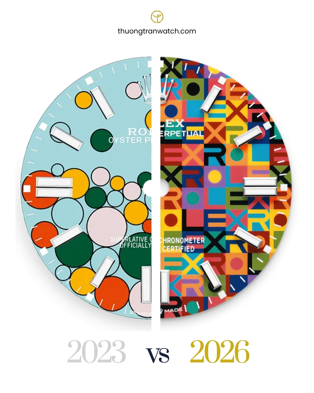 => Rolex không chỉ bán một chiếc đồng hồ xem giờ; họ đang bán "sự bất ngờ". Khi cả thế giới nghĩ họ sẽ ra mắt một mẫu GMT-Master II mới, họ lại tung ra những "bong bóng" và "ô vuông" màu sắc. Đó chính là cách một "gã khổng lồ" duy trì vị thế dẫn đầu: luôn giữ cho mình một chút khó đoán và một chút trẻ thơ giữa thế giới cơ khí khô khan