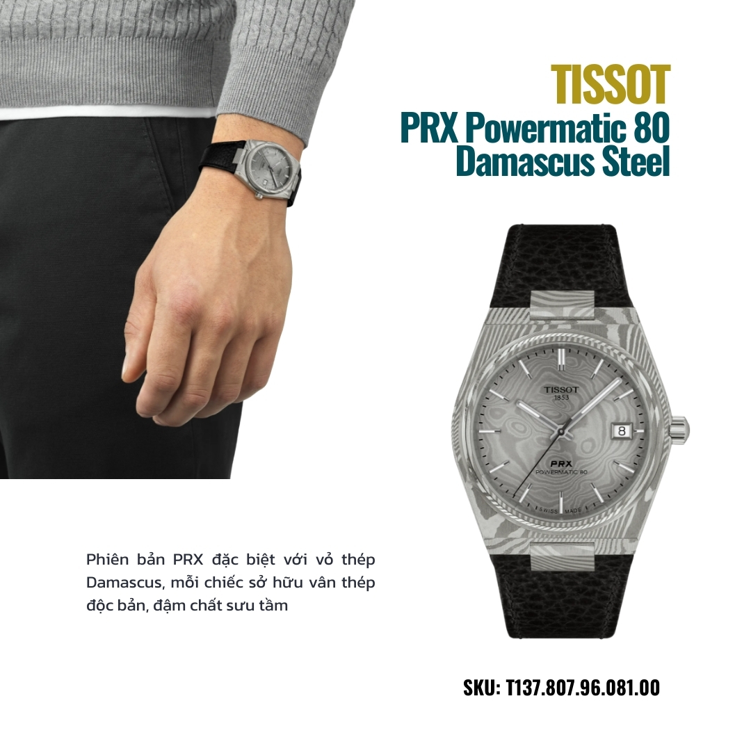 Được phát triển bởi thương hiệu Thụy Sĩ nổi tiếng Tissot, phiên bản PRX Damascus không chỉ là một chiếc đồng hồ cơ thông thường mà còn là một tuyên ngôn về giá trị thủ công và sự độc bản trong thiết kế