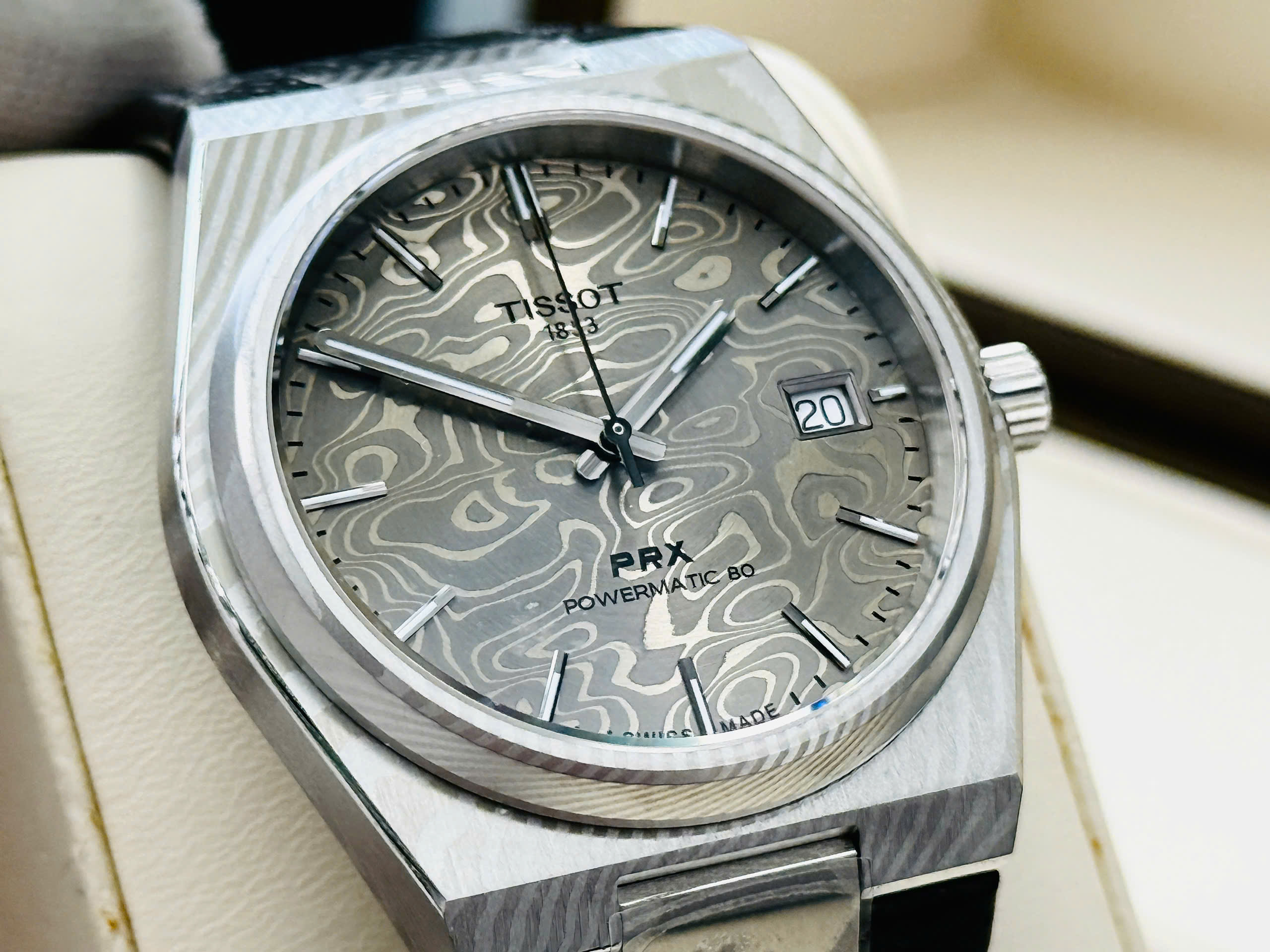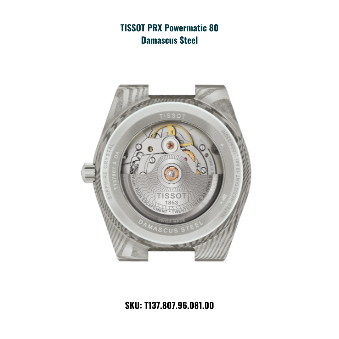 Với PRX Powermatic 80 Damascus Steel – T137.807.96.081.00 thương hiệu Tissot đã tạo nên một sản phẩm không chỉ thể hiện kỹ thuật chế tác đồng hồ Thụy Sĩ mà còn tôn vinh giá trị của nghệ thuật luyện kim truyền thống