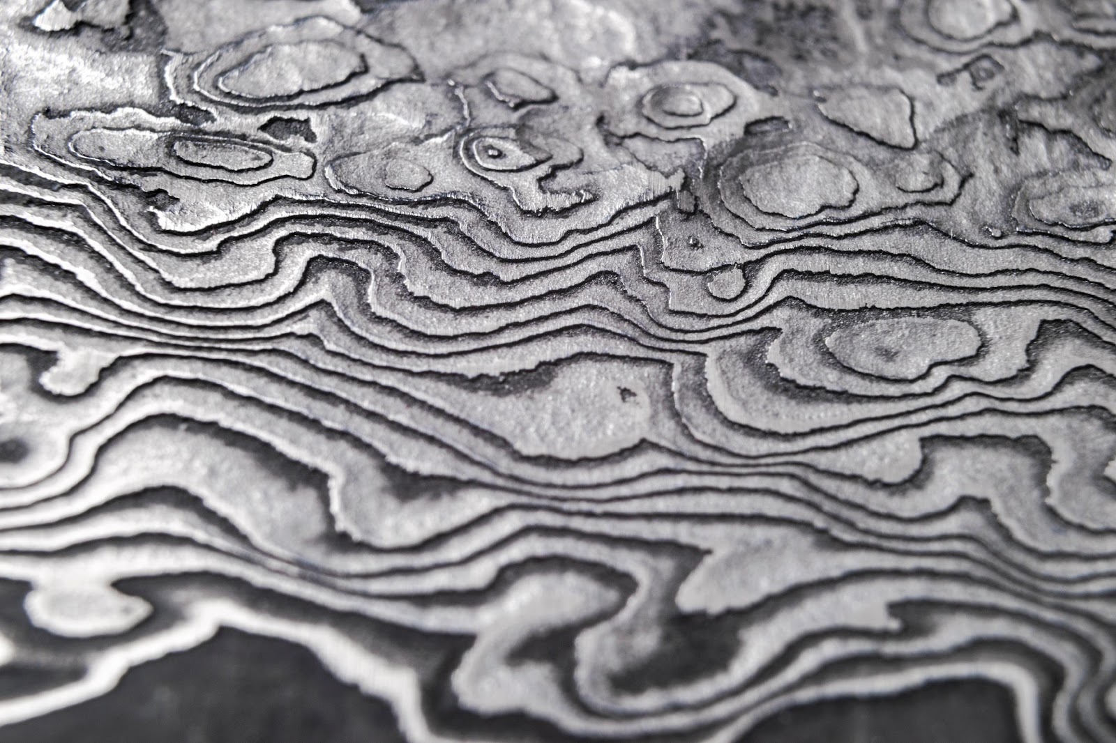 Sau khi gia công thành linh kiện, kim loại được xử lý bằng axit nhẹ để làm nổi bật các lớp kim loại khác nhau. Kết quả là hoa văn Damascus đặc trưng xuất hiện trên bề mặt kim loại