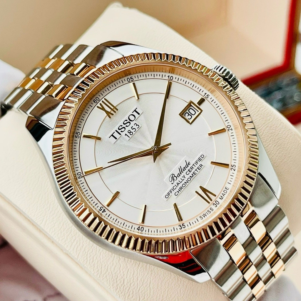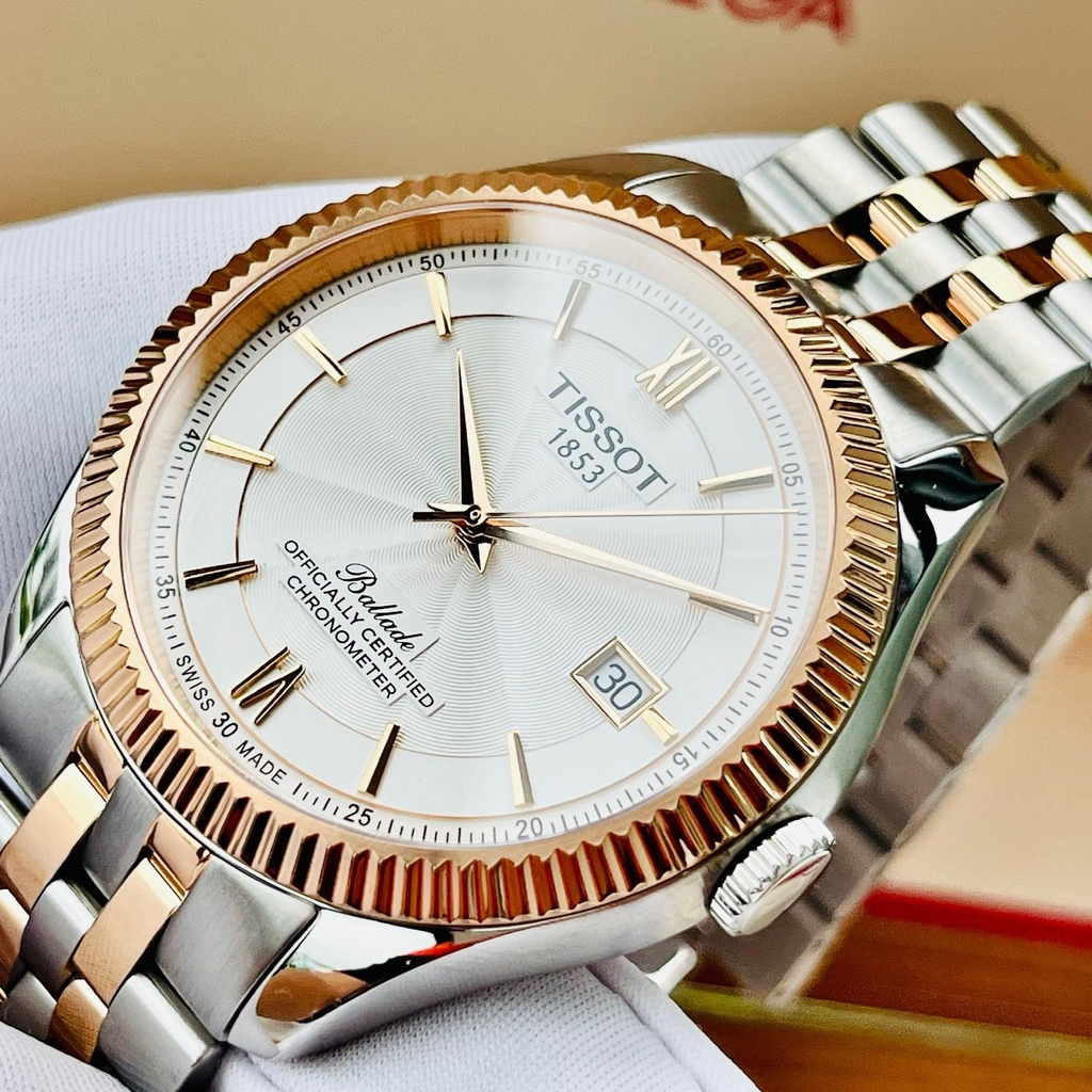 Tissot Ballade Powermatic 80 Silicum COSC Demi Rose Gold T108.408.22.278.00 là mẫu đồng hồ nam có bộ máy Powermatic 80 C07.111 chuẩn Chronometer độ sai số thấp, Balance Spring làm bằng Silicon chống từ rất tốt. Bộ máy có 25 jewels, 21600 vph và 80h trữ cót. Niềng khía đẳng cấp và mặt dial được tạo hình vân Guiloche độc đáo.