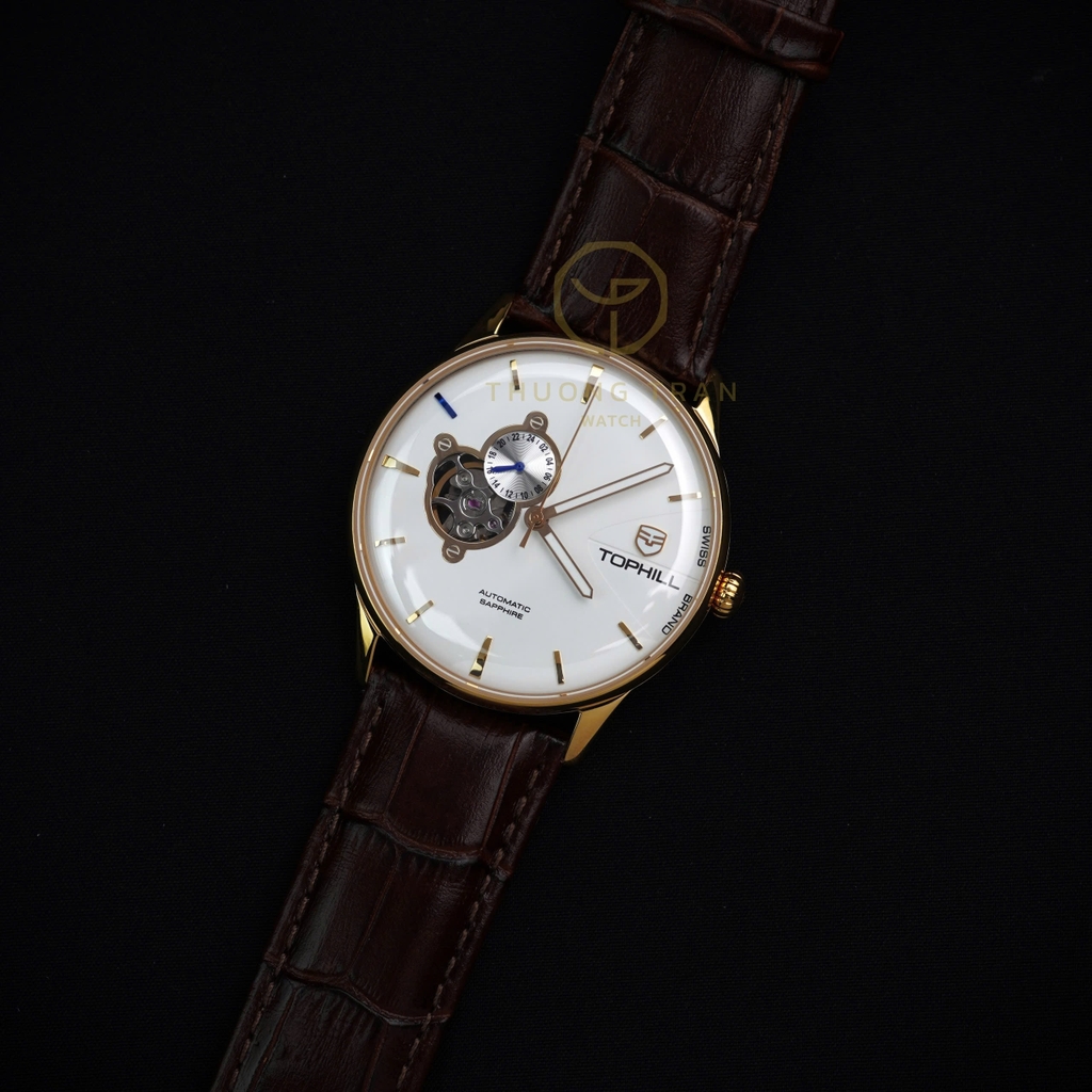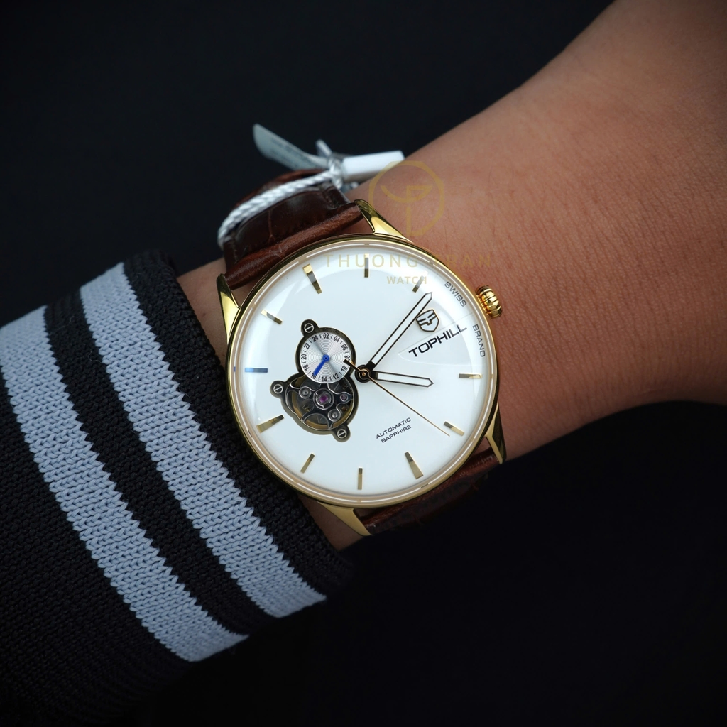 TOPHILL TW083G.PZ2258 là mẫu đồng hồ mang đậm nét cổ điển và sang trọng, được thiết kế dành cho những ai yêu thích sự tinh tế trong từng chi tiết. Mặt số trắng trang nhã với các cọc số thanh mảnh cùng cửa sổ lộ cơ tại vị trí 9 giờ, cho phép người đeo chiêm ngưỡng chuyển động của bộ máy tự động bên trong, tạo nên một điểm nhấn đầy cuốn hút. Dây đeo da màu đen cao cấp không chỉ mang lại sự thoải mái khi đeo mà còn tôn lên vẻ ngoài lịch lãm và quý phái. Với TOPHILL TW083G.PZ2258, bạn sẽ sở hữu một phụ kiện không chỉ thể hiện phong cách thời trang tinh tế mà còn là biểu tượng của sự hoàn mỹ trong chế tác đồng hồ.