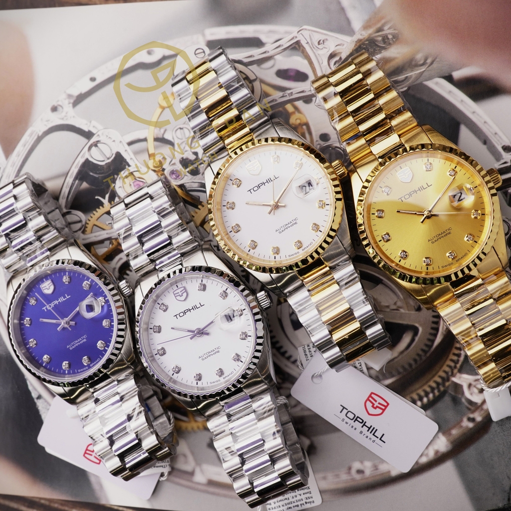 TOPHILL TW095G.S2238 là mẫu đồng hồ nam đến từ nhà TOPHILL mang đậm nét thanh lịch và cổ điển. Niềng khía kết hợp cùng cọc số đính đá mang vẻ đẹp của sự sang trọng cùng dial vàng vô cùng nổi bật. Mặt kính được làm bằng kính Sapphire đảm bảo tính thẩm mỹ và độ bền của sản phẩm trong suốt thời gian dài sử dụng.